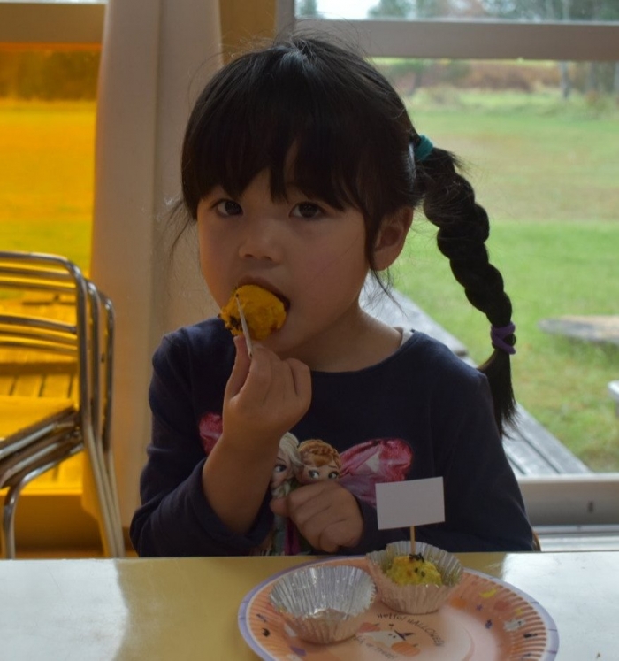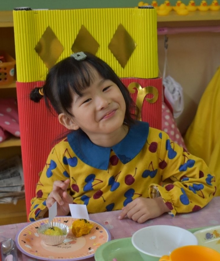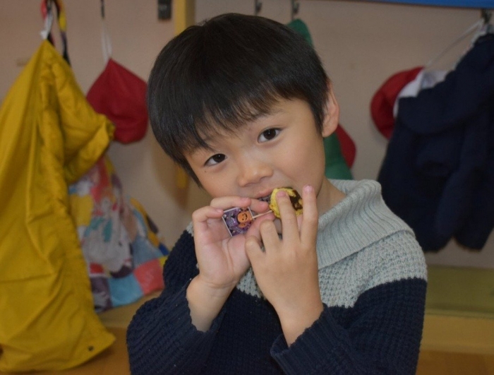 誕生会のおやつは,ハロウィン仕様に飾付けられた『スイートポテト』が登場☆彡 楽しいマジック,美味しいおやつと,幸せを噛み締めていた子ども達です。