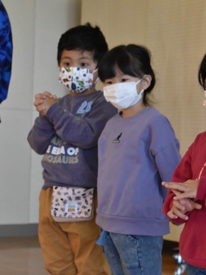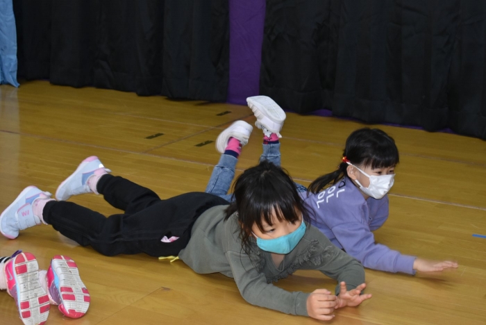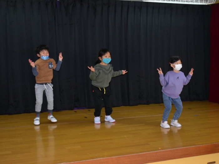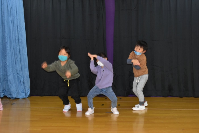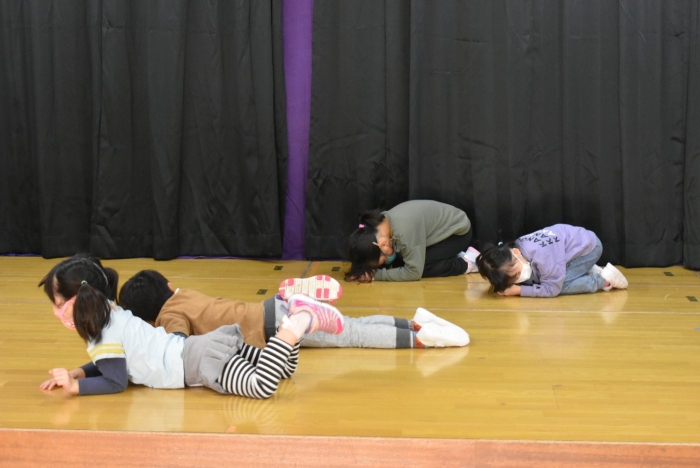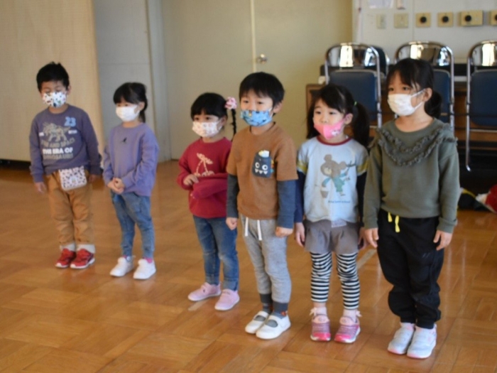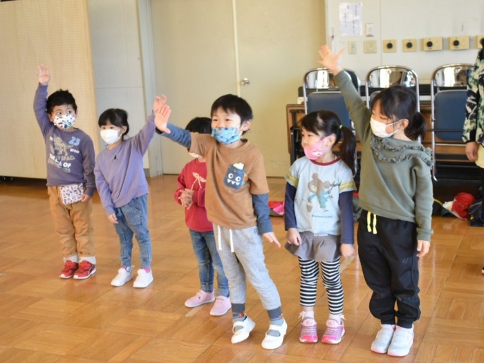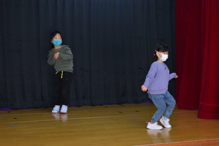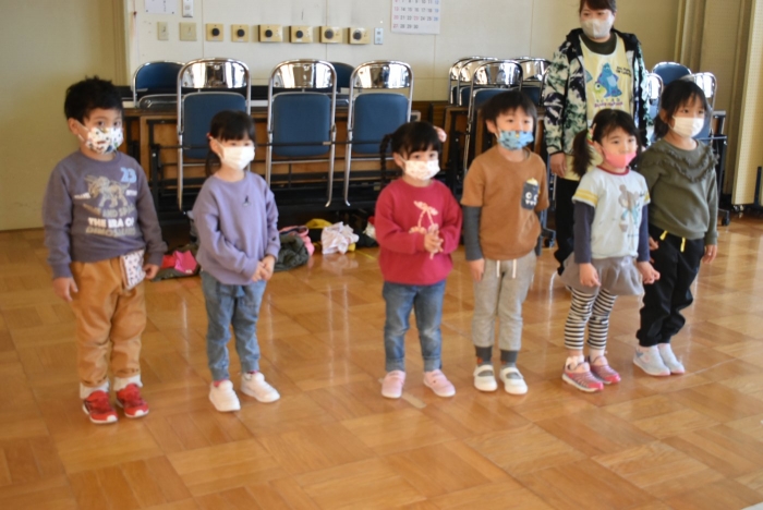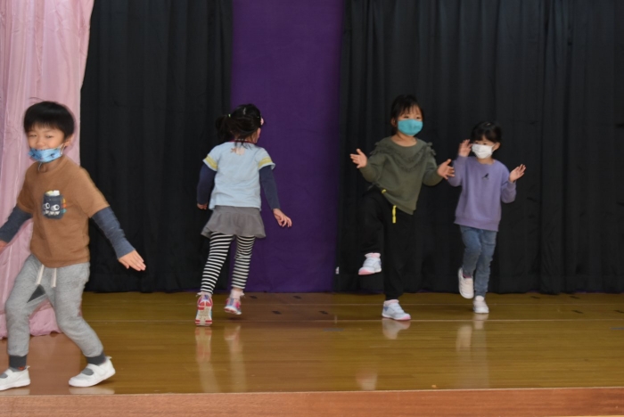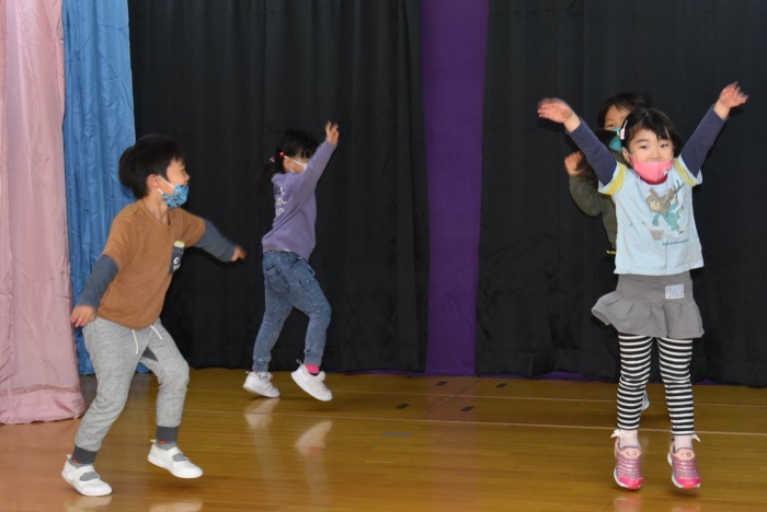 遊戯室のステージに幕が付き,発表会仕様になりました☆彡 登園して来た子ども達は,直ぐに発表会をイメージしたようで,ステージでひと踊り! 昨年度の発表会での遊戯や劇の曲,保育室で流れている聞き馴染みの曲を掛けてもらい,オリジナルダンスを楽しんでいました。この生き生き伸びやかな表現力が,発表会でも発揮できるよう支援していきたいと思います。