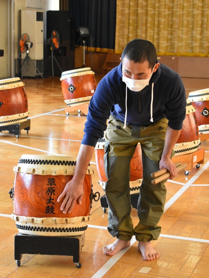 本年度も,中西別草原太鼓保存会 指導者の武藤さんにお声掛けをいただき,出前授業『和太鼓』が実現できました☆彡  継続して中西別の伝統に触れる機会をつくっていただき,心より御礼申し上げます。