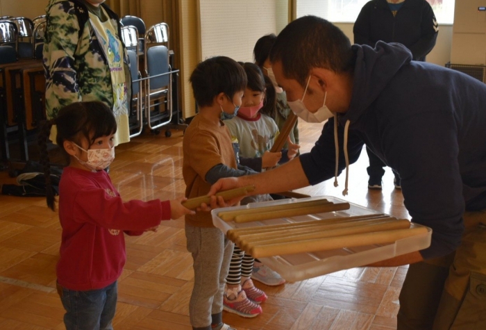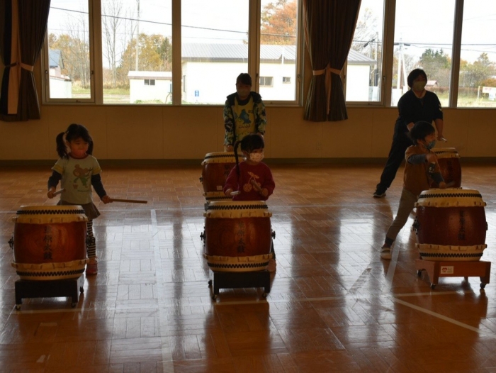 地域の伝統を知るということで,中西別草原太鼓の由来も教えていただいきました。なんと,園児の曽祖父が創立者だったことを知り,みんなで驚いたり, 当事者の園児は誇らしげな表情をみせたりしていました。世代を超え受け継がれたものに触れる…感慨深いものがありますね。