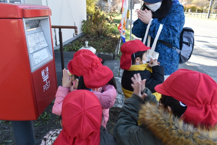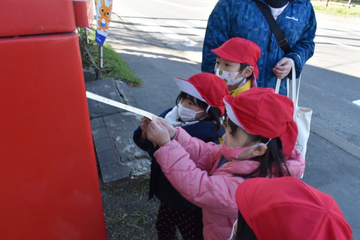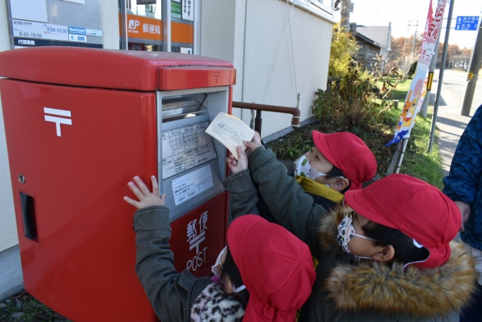 中学校,郵便局へは,先日の出前授業『英語』と『和太鼓』のお礼状を届けに行ってきました。これまで関わったお兄さん,お姉さん,先生を思い起こしながら,「いるかな~?会えるといいな♬」と,わくわくしながら中学校へ! 改めてお礼状を渡す時には,緊張で凝り固まった状態の子ども達でしたが,玄関で出迎えてくだった教頭先生やF先生が子ども目線で温かく対応してくださいました。 有り難うございました。 和太鼓師匠への礼状は,「ありがとうございました! 無事にとどきますように…」と郵便ポストへ投函してきました。