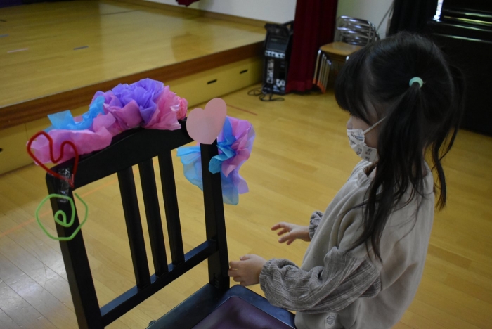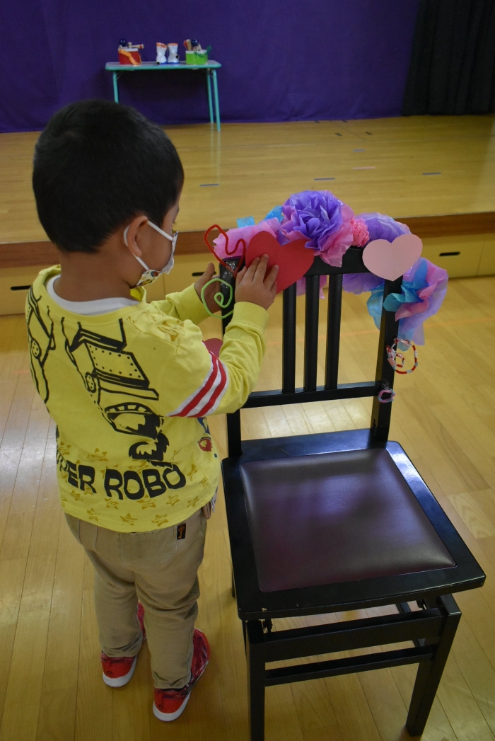 今日は,別海ミルク王国 国王様が中西別幼稚園に来園する日。 「王様をおもてなししよう!」と,これまでに培った制作技術を活かし,王様に座ってもらう椅子を煌びやかに飾り付けたり,王様に会ったら どんなことを聞いてみたいか話をしたりしながら,みんなでワクワク期待をふくらませていました。