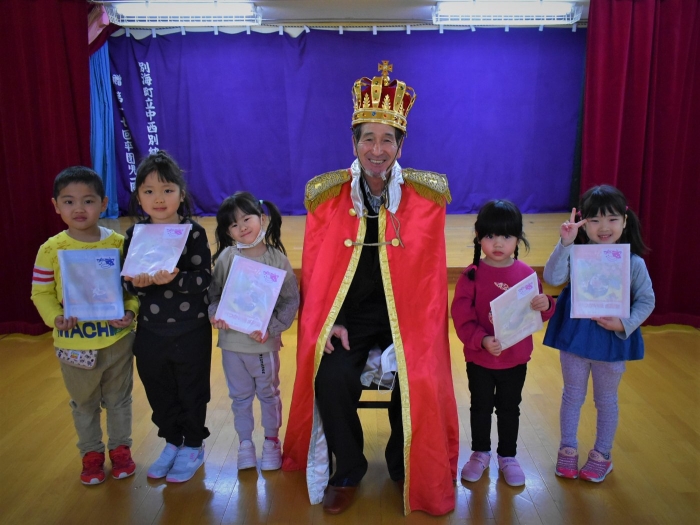 別海ミルク王国 国王様の幼児施設訪問は,30年以上もの間続いてきた酪農振興事業。残念ながら本年度で終わりを迎えることとなりました。幼稚園時代に国王様と出会ったことが心に残っている本園職員もおり,その歴史や別海町の子ども達に与えた影響の大きさをしみじみと感じました。 先般,不適切な保育の事案が明るみとなり,幼児期に携わる幼稚園としては居たたまれない思いです。 国王様の園訪問のように,大人になっても,ふとした時に温かな記憶として蘇ってくる…そのような保育を営めるように,気を引き締め直していきたいと思います。