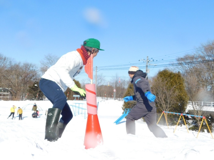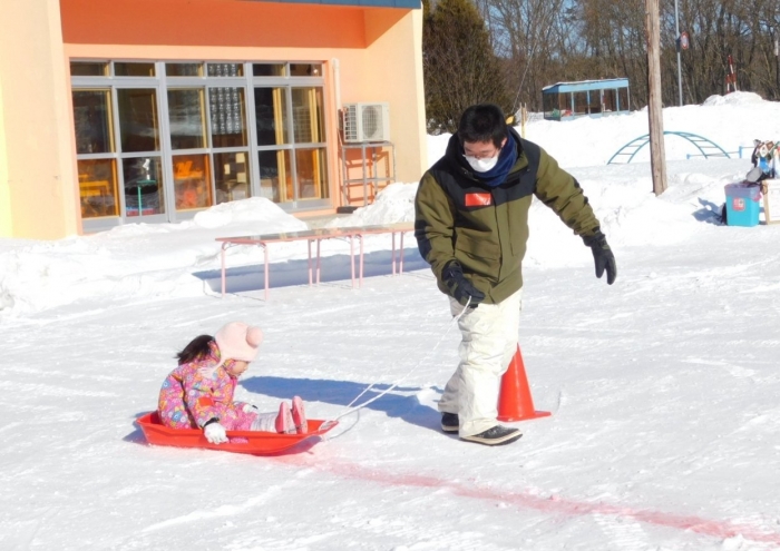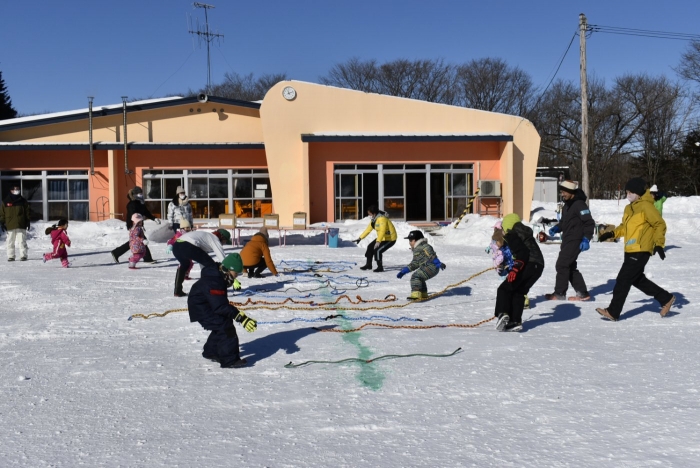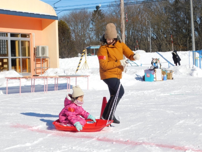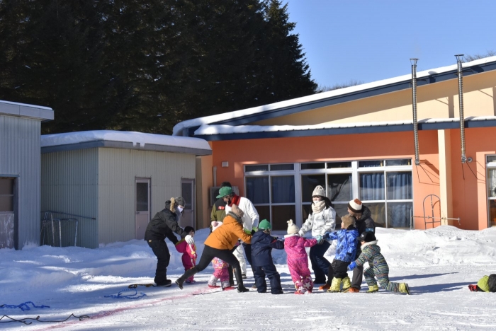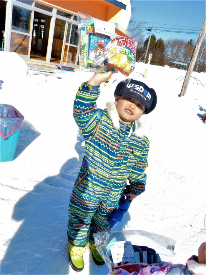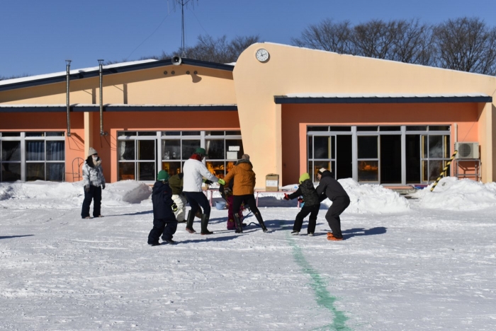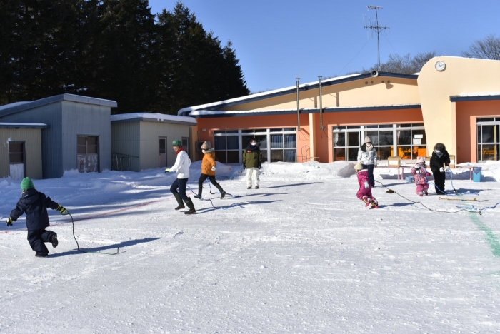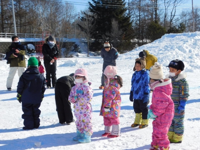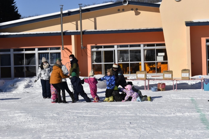 冬だからこそ楽しめる活動を,子ども達は楽しみながら,お父さん・お母さん方は闘志を燃やせるように ちょっぴりハードな内容のものを厳選しました(笑) 全力投球で楽しんでくださる保護者の方,幼稚園時代と変わらず純真にゲームを楽しんでくれる小学生,寒さも雪もなんのその!逞しいぴよぴよさんのおかげで,終始和やかな雰囲気での雪上お楽しみ会となりました。園児にとっても,思い出深い園行事になったことと思います。ご家族の皆様,本当に有難うございました!