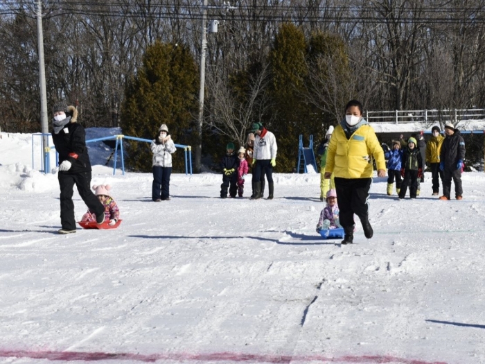 中西別幼稚園の冬の風物詩『親子雪上お楽しみ会』を開催! 前日まで身を刺すような気温でしたが,穏やかな快晴☀絶好の雪遊び日和となりました。お父さん,お母さんはもちろん,ぴよぴよさん,小学生も来園! ご家族で園行事を楽しんでくださり嬉しい限りです。