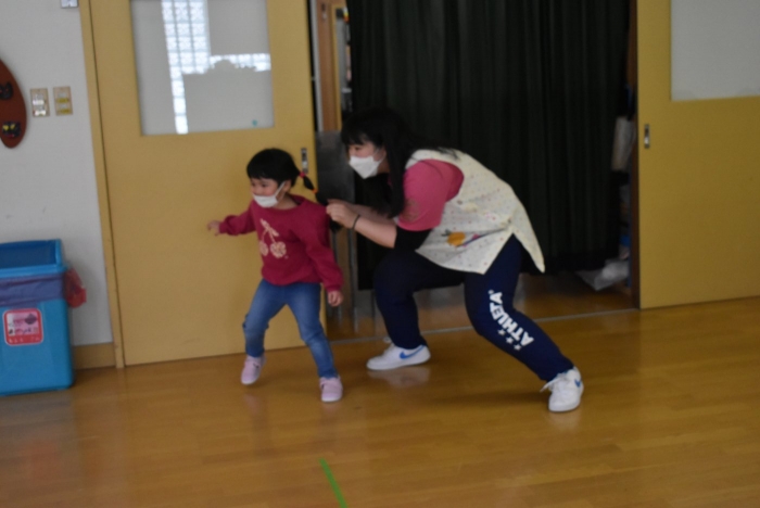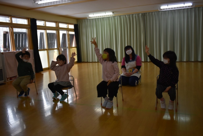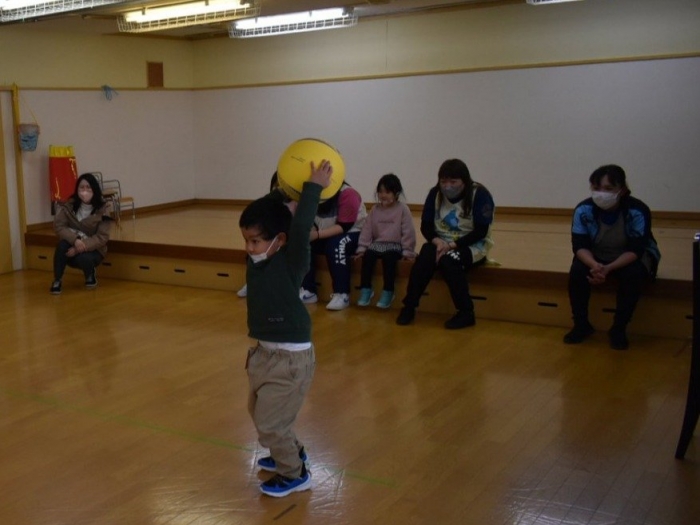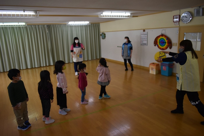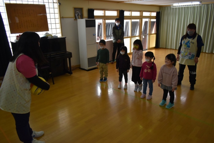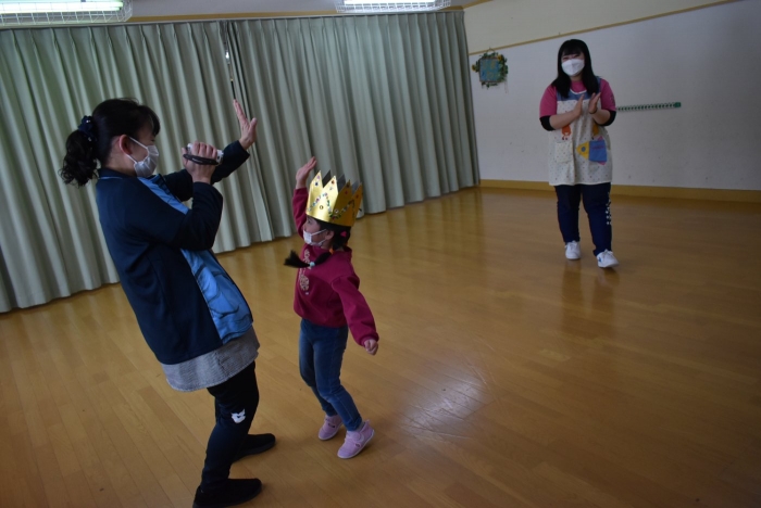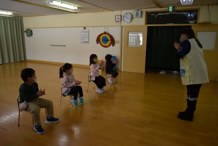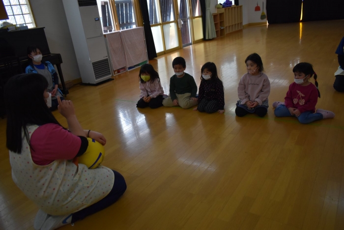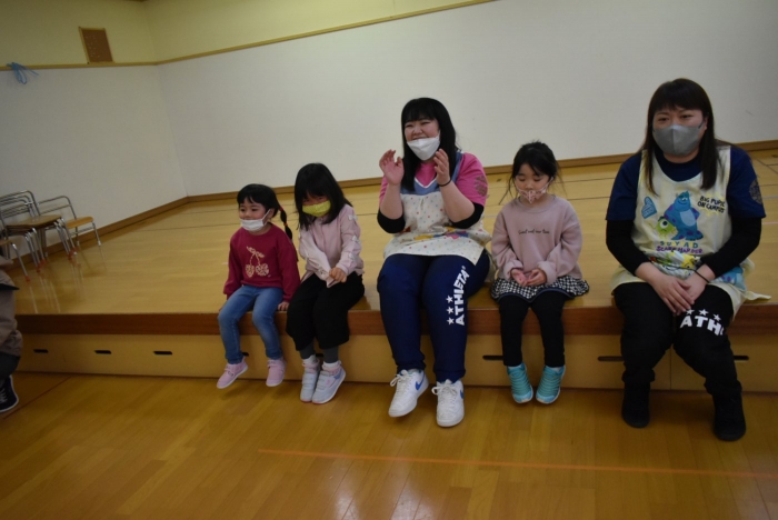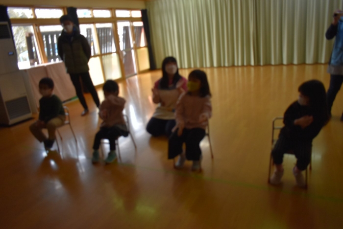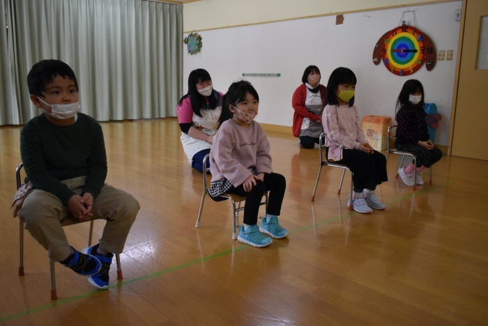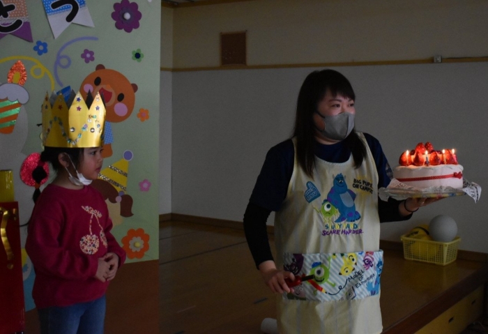 今年度最後となる『誕生会』。待ちに待った2月生まれの友達の喜び・嬉しさをみんなで共有しました。 友達がお祝いされる場面を見て,楽しみにしていた入・退場でのハイタッチ! 誕生児だけの特別仕様の椅子,お祝いの絵本やプレゼント授与,誕生日ケーキのロウソク吹き消し,それらを体験することができ,それは嬉しそうな表情でした。 ステージ上では ちょっぴり緊張しながらも,一つ大きくなった気持ちをもって自己紹介や,友達・先生からの質問に受け答えをしていました。その姿をほのぼの見つめる友達,祝福ムードで心が温まる誕生会でした。