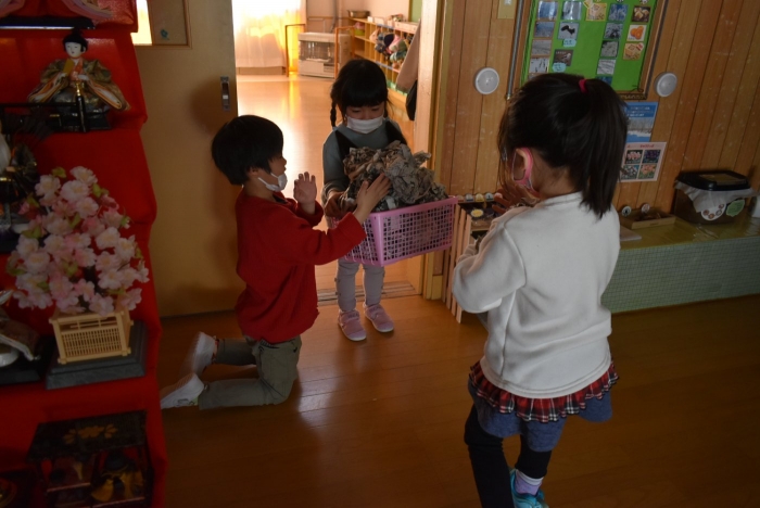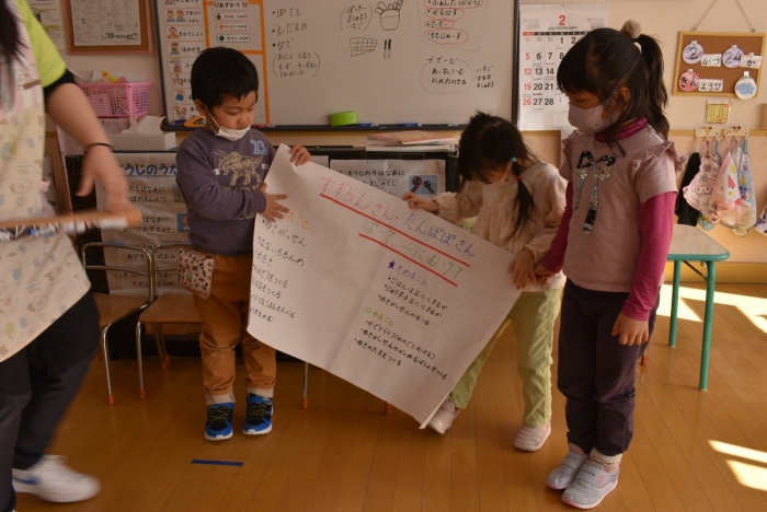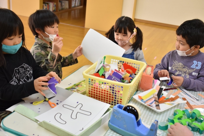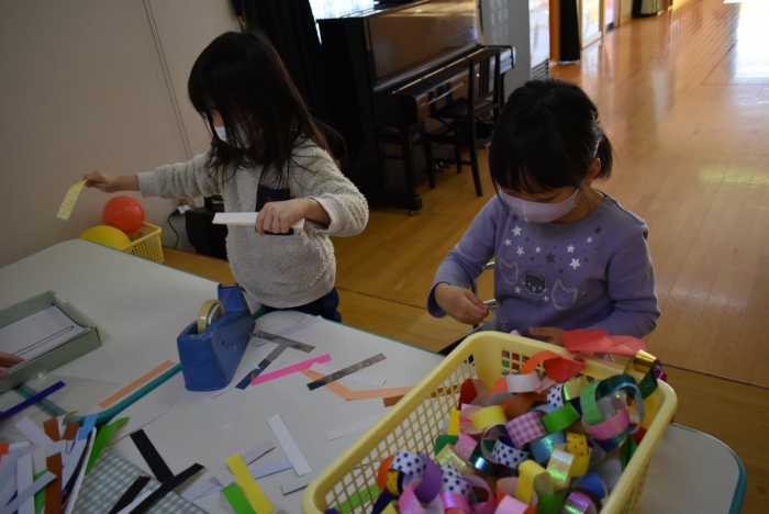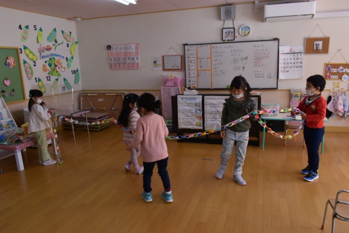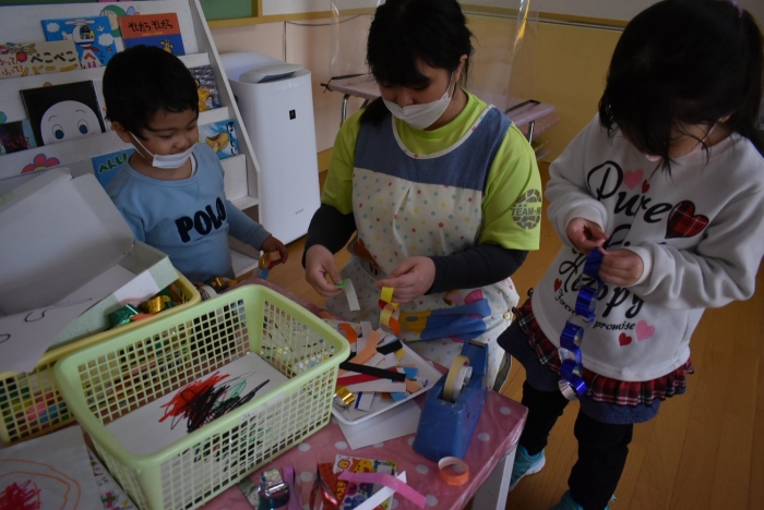 『すずらんさん・たんぽぽさんパーティー』の日を心待ちにしている子ども達。カレンダーやシール帳を確認し,「あと〇日だね」「もっと飾りを作らなくちゃ」「雪合戦は,どうやってやる?」などと,見通しをもちながら主体的に活動しています。
