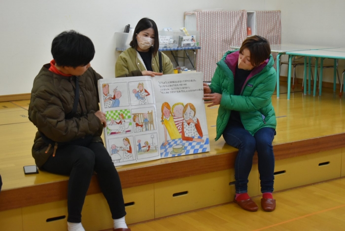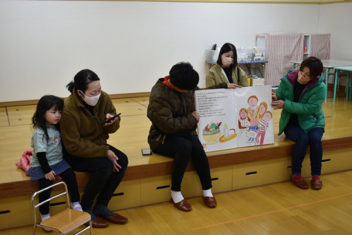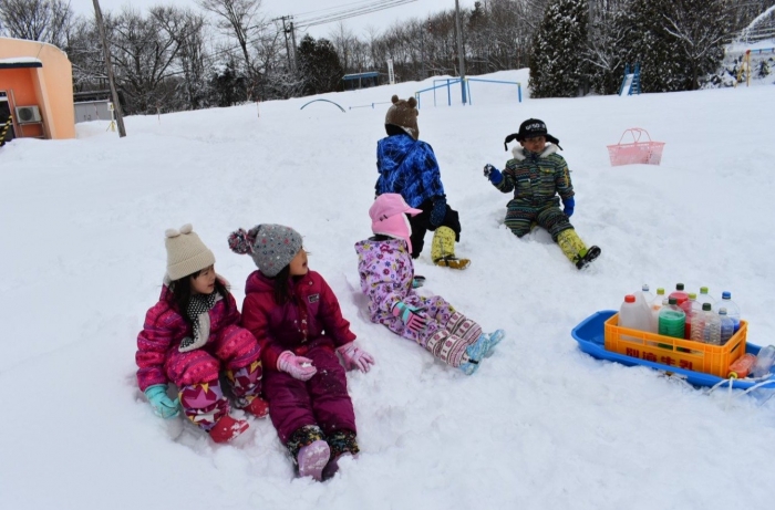 パーティーに向けて まだまだ雪遊び! 活動の締め括り『へそっこ合同読み聞かせ』