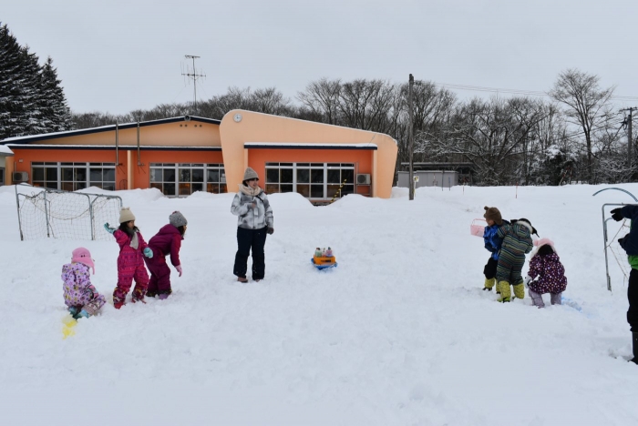 今朝降り積もった雪も,あっという間に解け出し,春が近づいてきていることを感じます。ですが,グランドには,まだまだ雪がたっぷりと! 今日は「雪合戦をしたい!!」と 戸外へ繰り出していました。『すずらんさん・たんぽぽさんパーティー』でも,みんなで『雪合戦』を楽しむそうですよ!