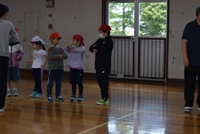 6月3日(土)開催『中西別幼稚園・中西別小学校合同運動会』に向け,全園児で小学校へ行ってきました。 今日は,小学校2年生,3年生,4年生に運動会伝統のフォークダンス『糸まき』『ジェンカ』を教えてもらいました。ジェンカは三年振りに復活です☆彡