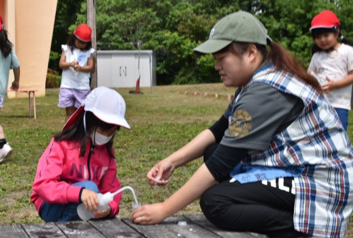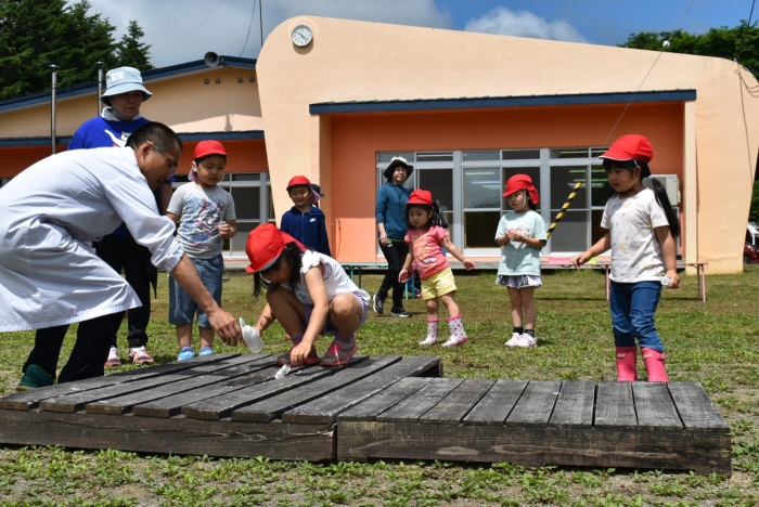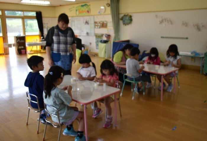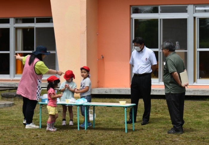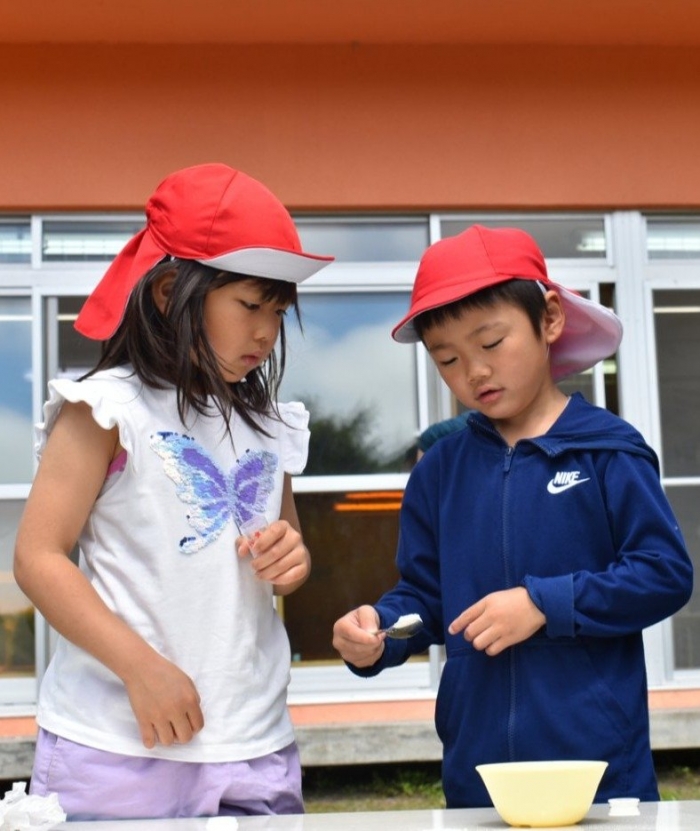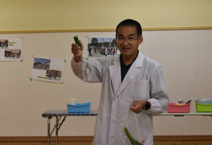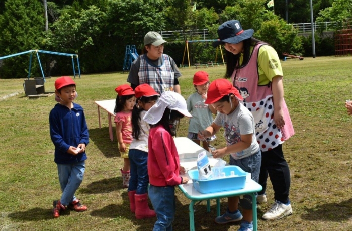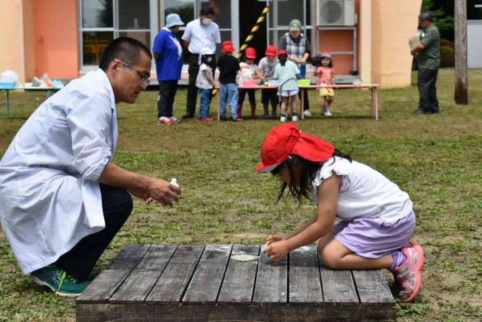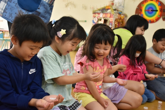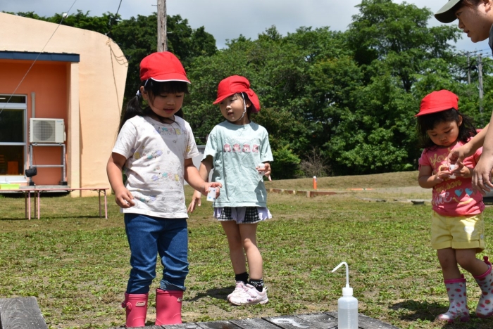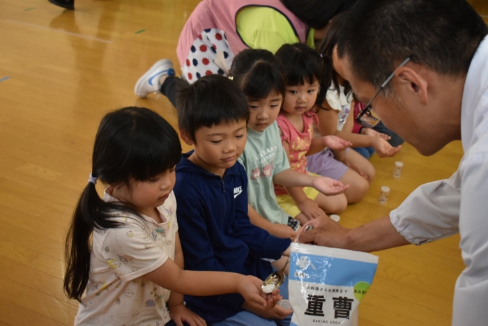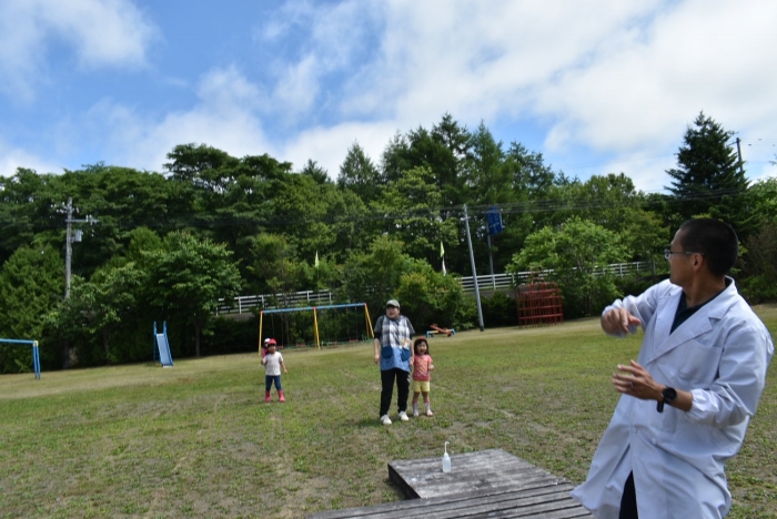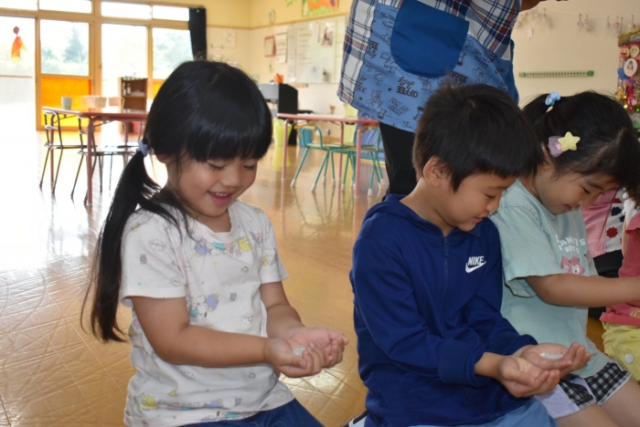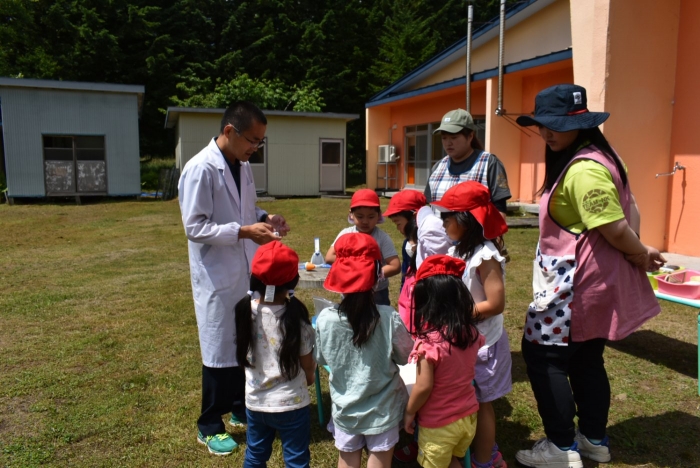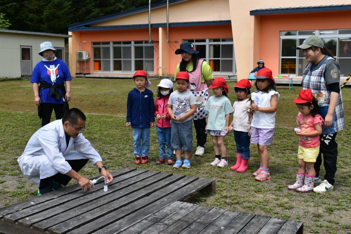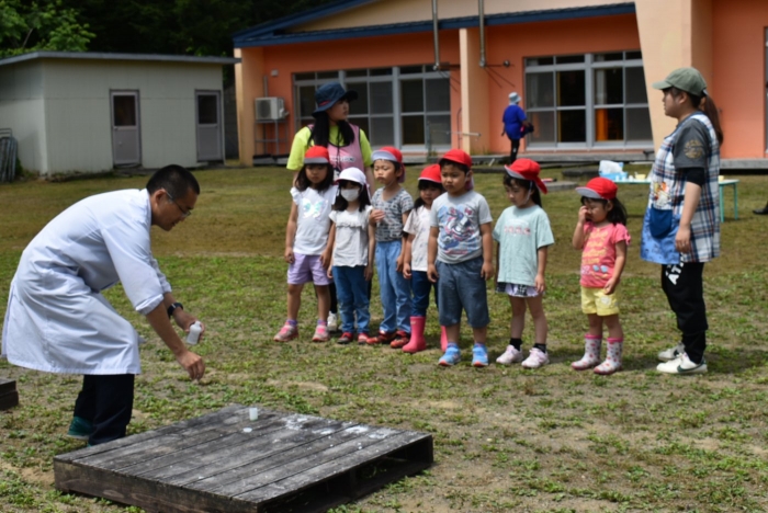 お忙しい中,子ども達の好奇心・探求心を湧き立たせる出前授業を行ってくださったF先生,本当に有難うございました。今後とも,親しみや憧れの気持ちから学校を身近に感じたり,幼児期での知的好奇心から学校への自覚的な学びへとつなぐきっかけを大切にしていきたいと思います。
