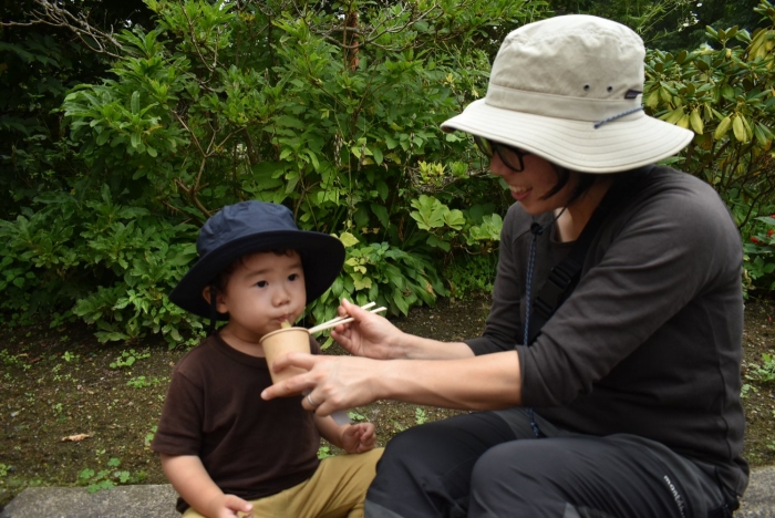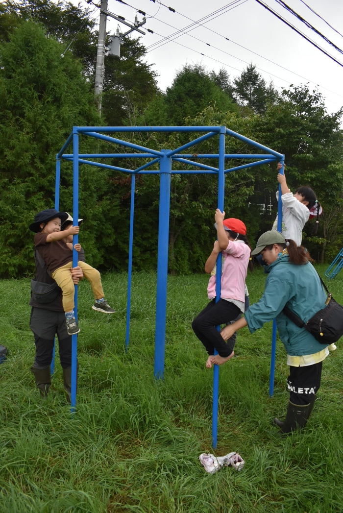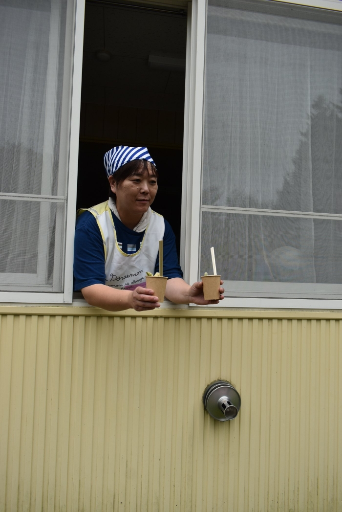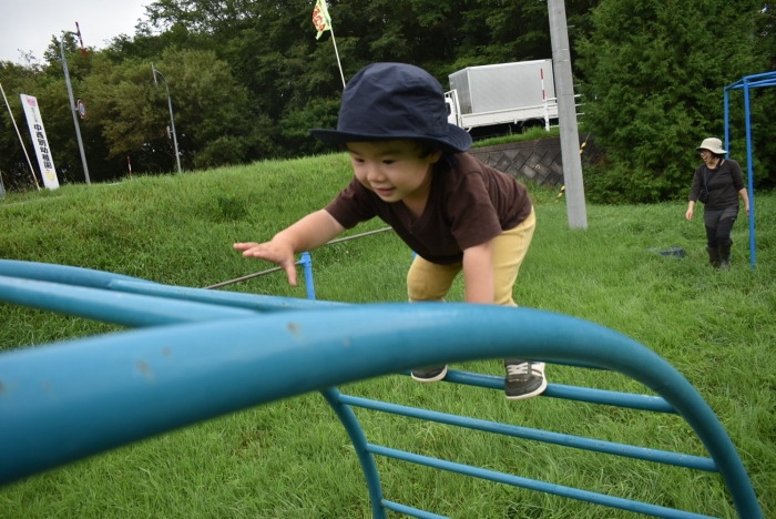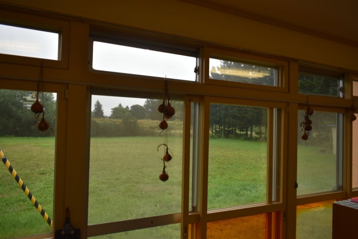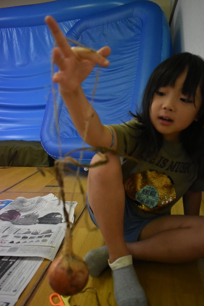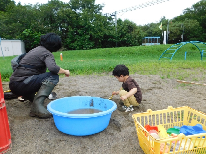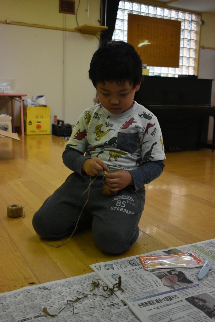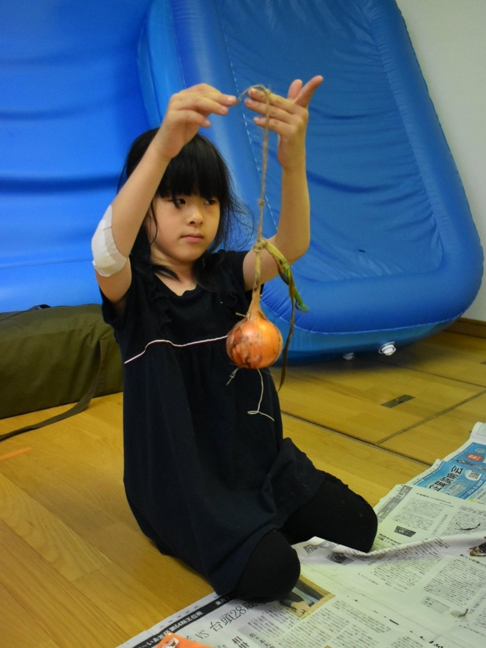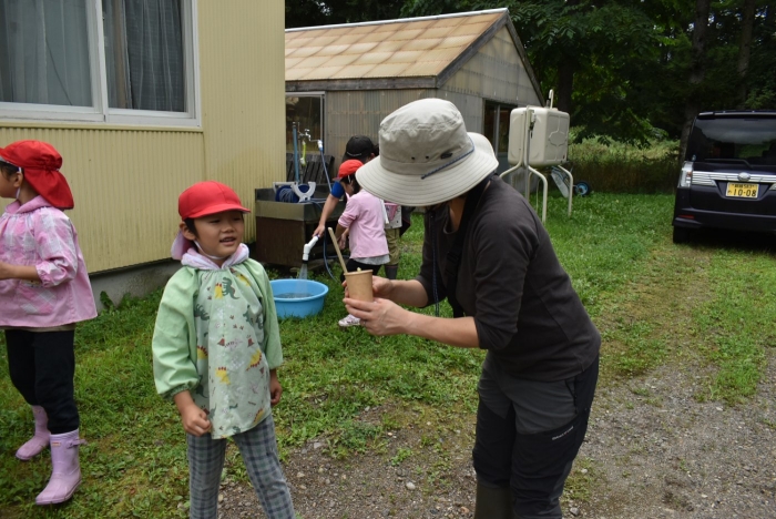 戸外では,ぴよぴよさんと一緒に食べ頃となった野菜を収穫したり,砂場や固定遊具で遊んだりしました。自分たちがやっていることに興味をもって一緒に野菜を採ったり,遊びを真似たり,自分たちが育てた野菜(タマネギ・エンドウの天ぷら)を頬張る姿に,愛おしそうな表情をみせていた園児たち。別れの時には,ハイタッチを交わしている姿は,何とも微笑ましい場面でした。