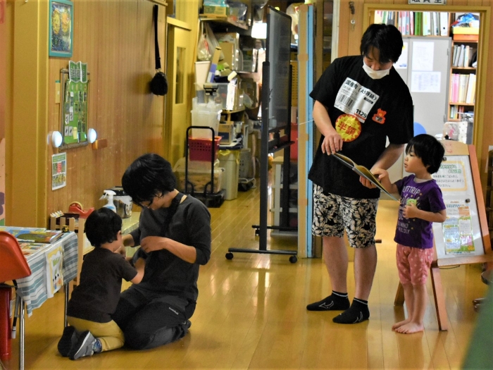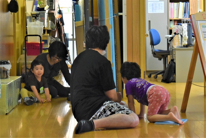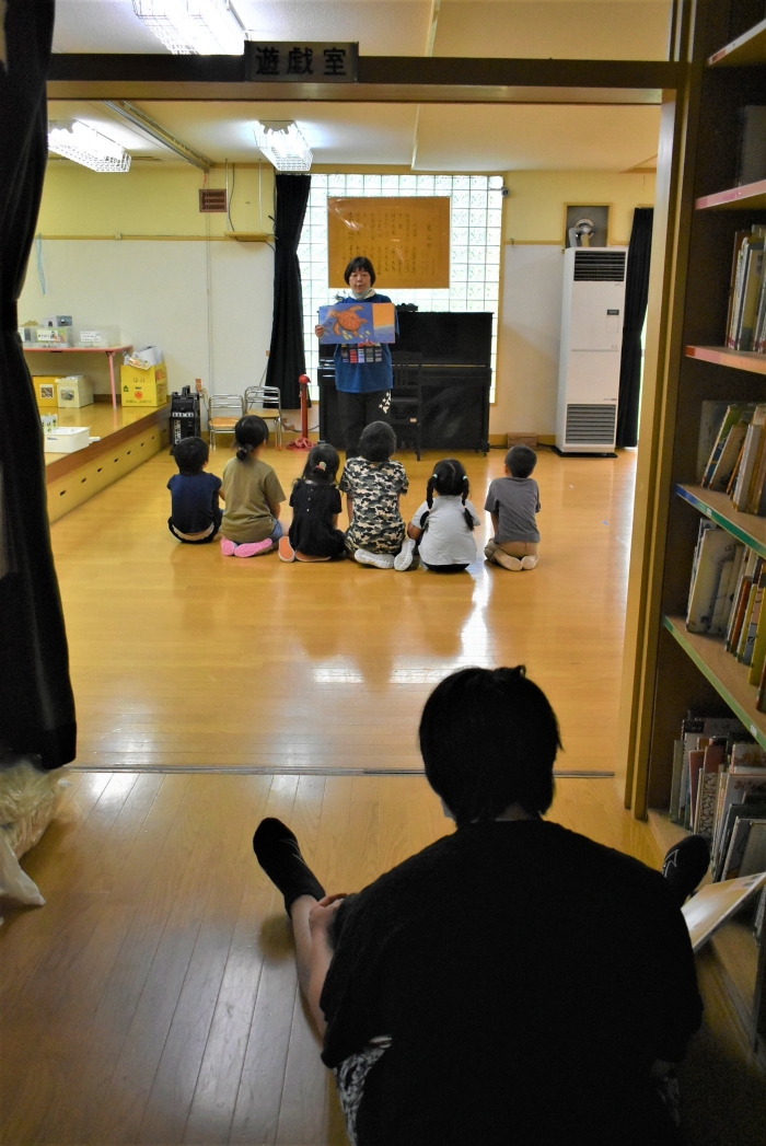 6月開始から約2ヶ月ぶりに『ぴよぴよクラブ』を開催! 今回は,2組の未就園児親子が来園してくださいました。可愛いぴよぴよさんと一緒に遊べる♪と大喜びの子もいれば,小さい子との関わりに 不安そうな子もいますが,同年代だけでは味わうことのできない感情体験を味わえる大切な機会ともなっています。