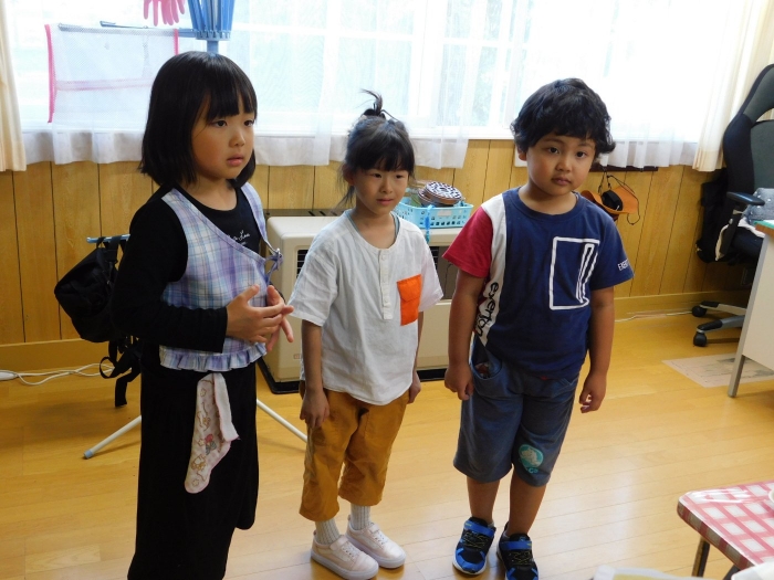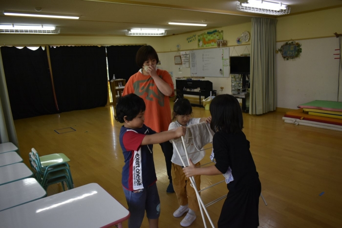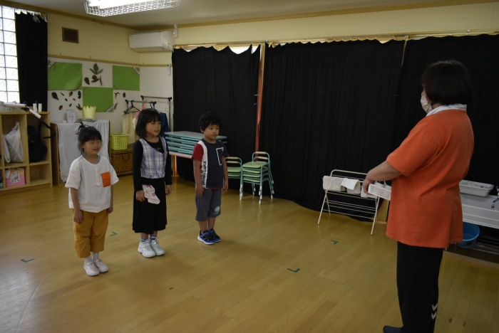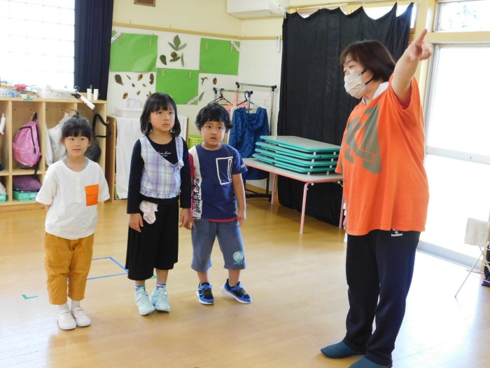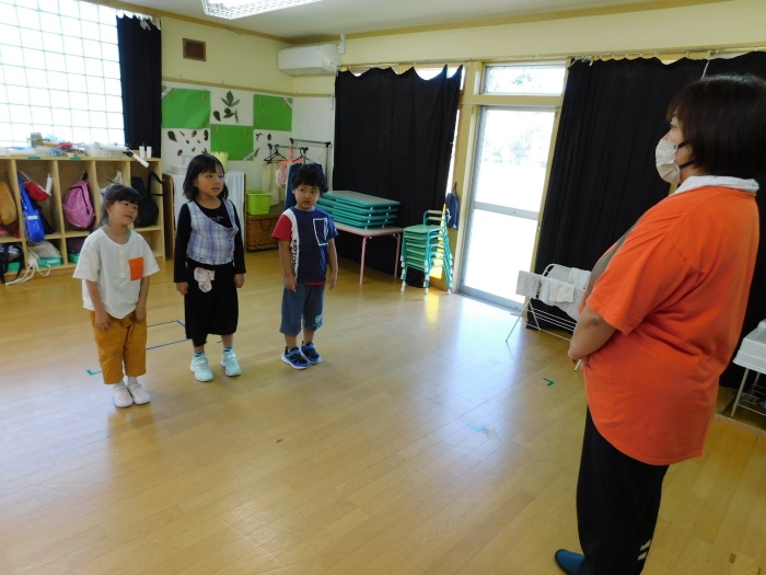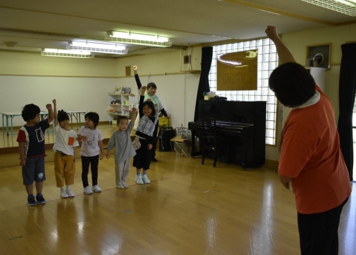 体で遊ぼう,頑張るぞー!! ⇒ おっ,おー!?(ちょっと息の合っていない)