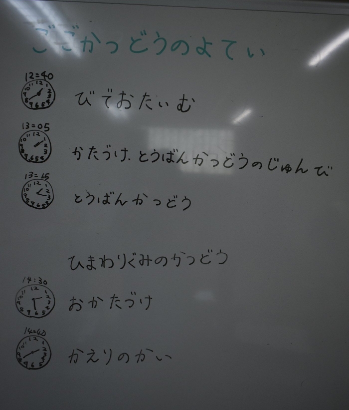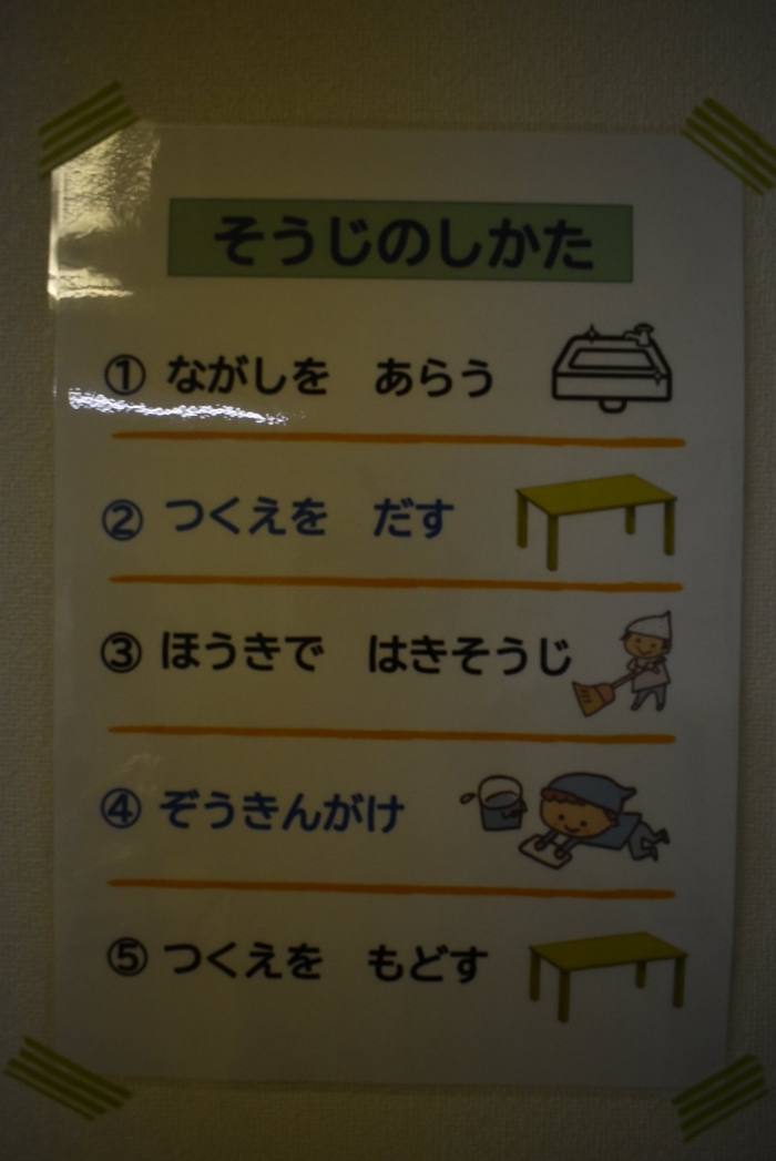 掃除当番は,教室と動物小屋を交互に行います  週末金曜日は,これまでと同様に午睡ありの日程に