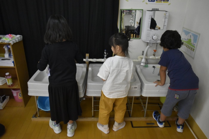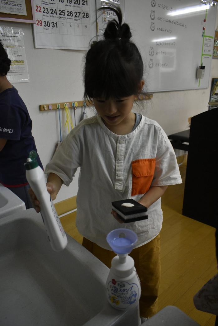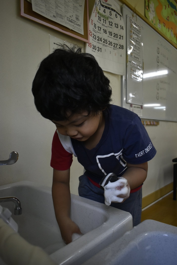 年長組になったらできる活動として特別な思いを感じ,意欲満々だった年長児たち。今日は教室の掃除や,文化祭作品展に向け秋探し散策をしました。幼稚園では,「全然,眠くな~い!(午睡をしなくても)」と言っていた(強がっていた)年長児たちでしたが,家に帰ってからはどうだったでしょうか?  新たな生活リズムに慣れるまで,心身の状態,体調面に配慮していきたいと思います。