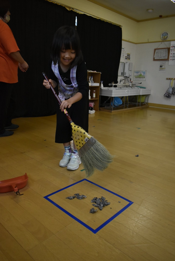 集めたゴミをチリトリへ,ホウキで入れるのが難しく,最終的には手で(笑)