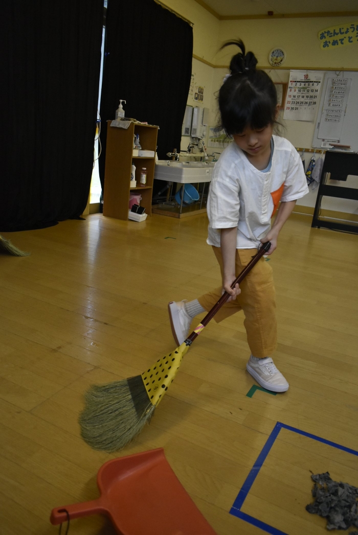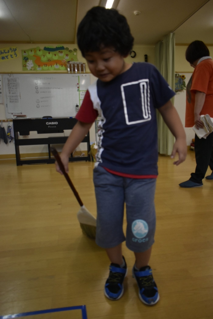 今日から年長組の午後活動が始まりました。午睡を取り止め,小学校へ向けての生活リズムを整えたり,掃除活動を通して掃除・役割分担の仕方を学んだり,クラスで取り組む活動を多様に取り入れ,より仲間意識・団結力を高めていければと思います。