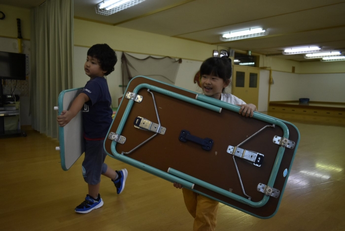 毎日やっているテーブルたたみ&運搬はお手のもの!