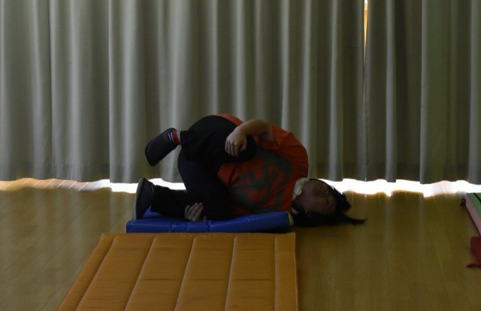 『揺りカゴ』⇒『前転』 『揺りカゴ』で体の動かし方のコツを掴むと,前転も体得しやすくなります