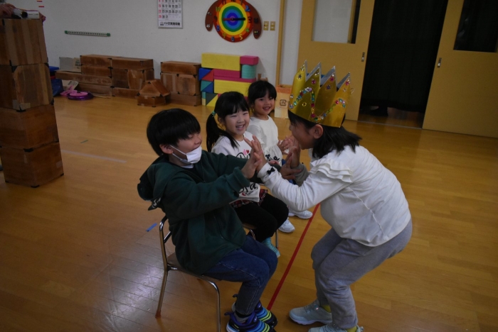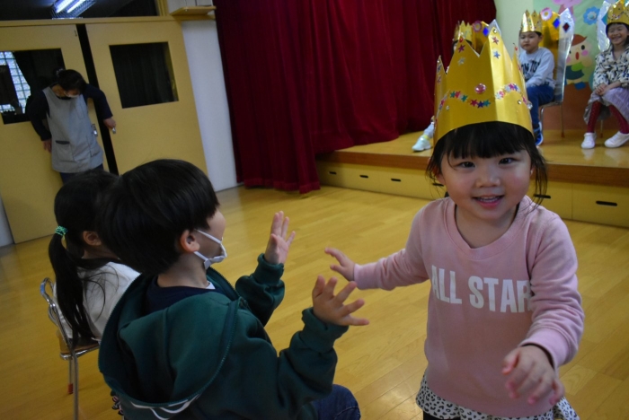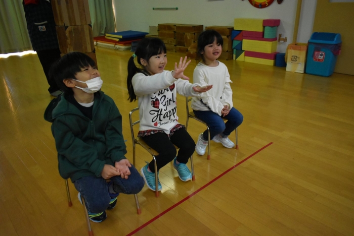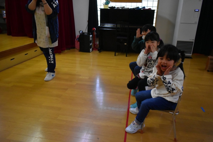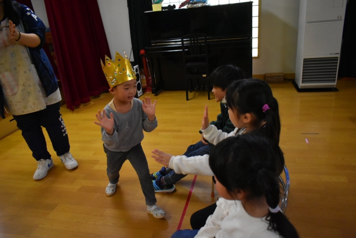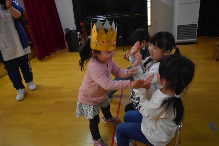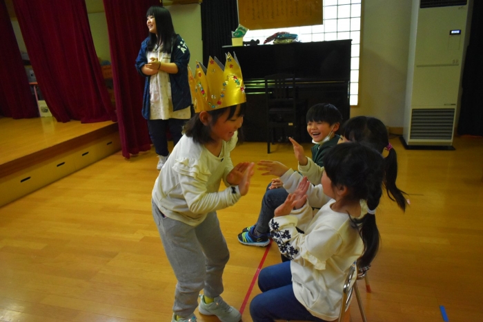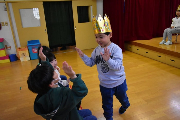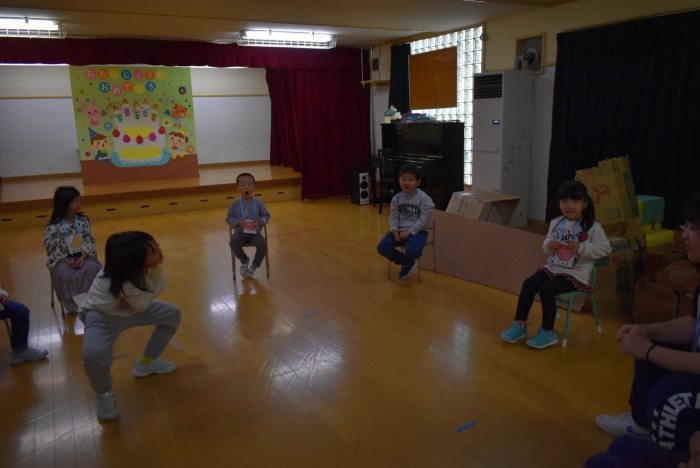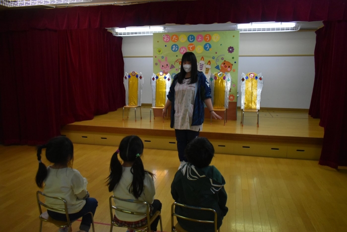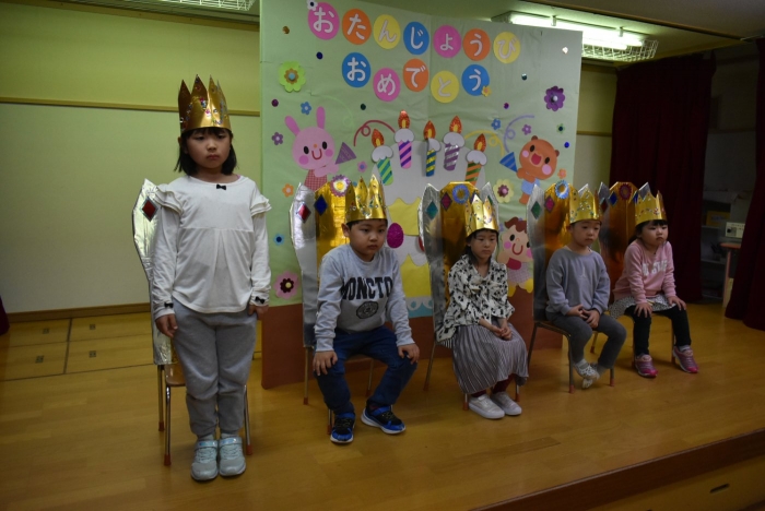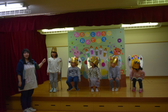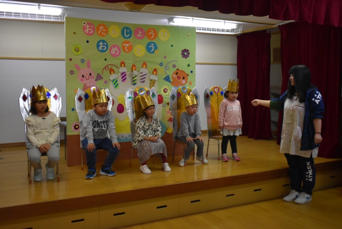 続いては,誕生会のお楽しみをしまーす!! イエ――イ⤴⤴