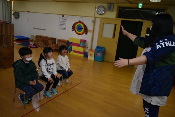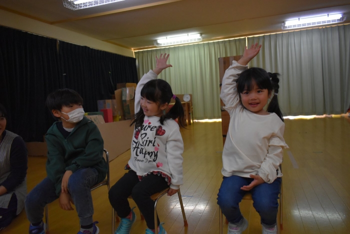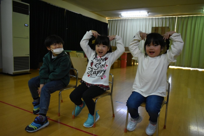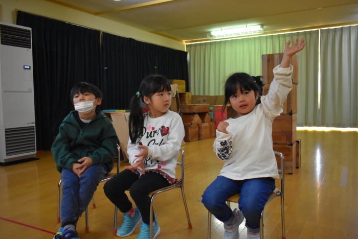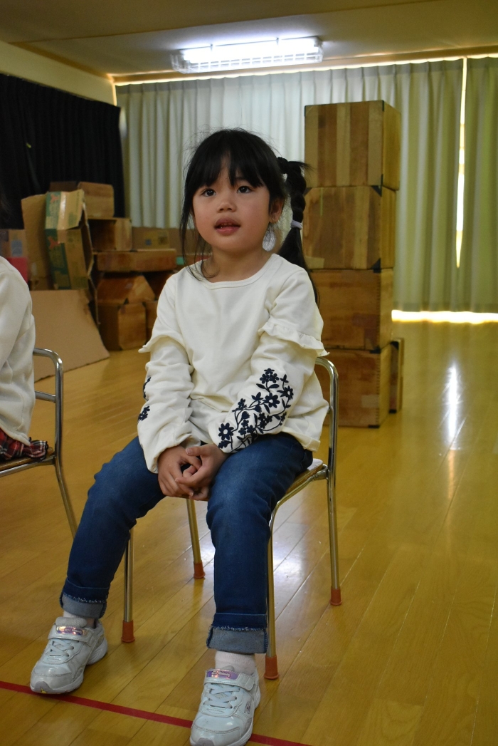 続いて,○○ちゃんに質問のある人は,かっこいいポーズを!