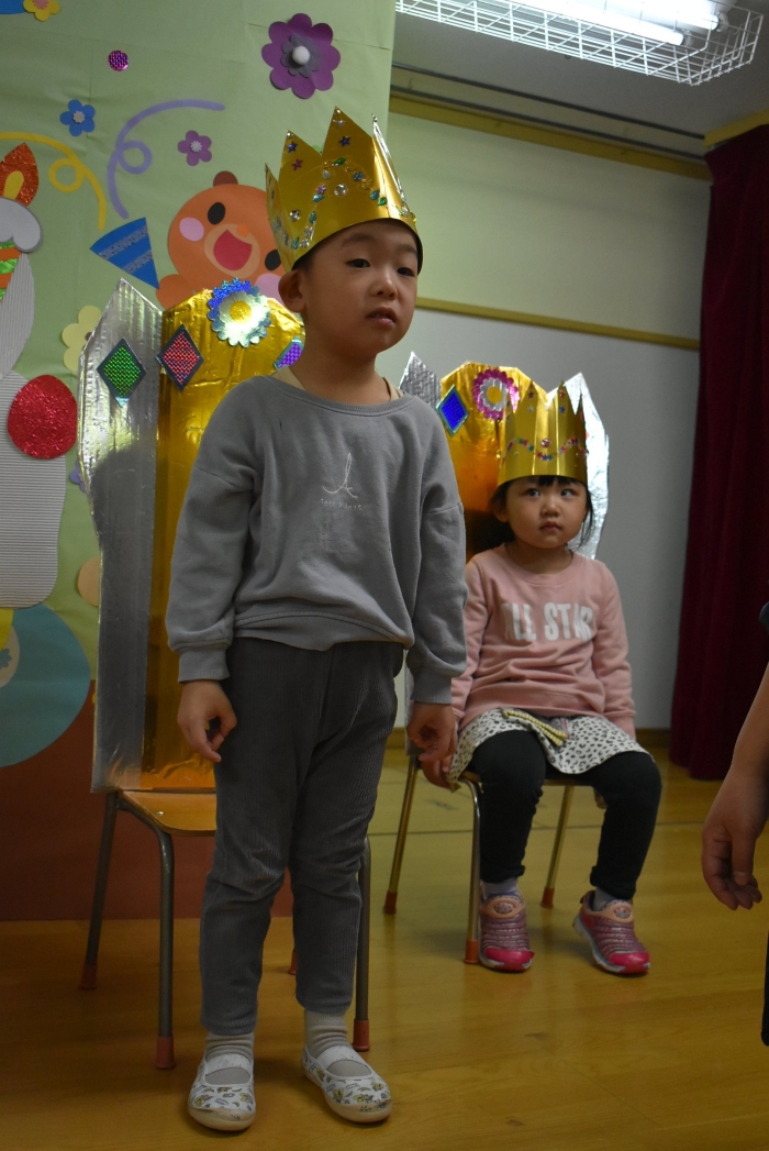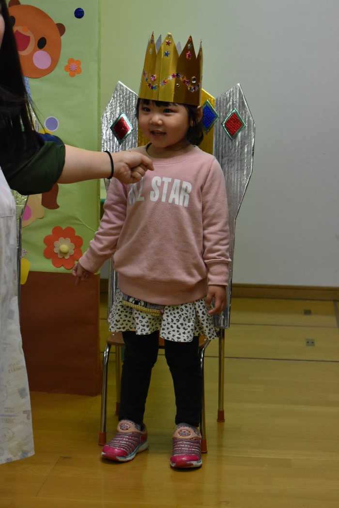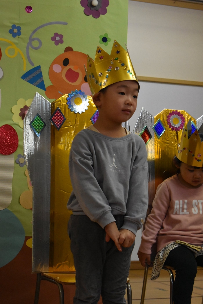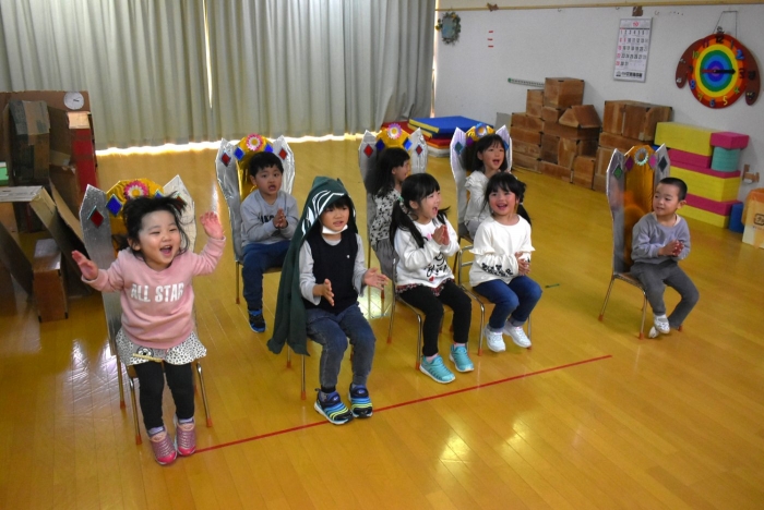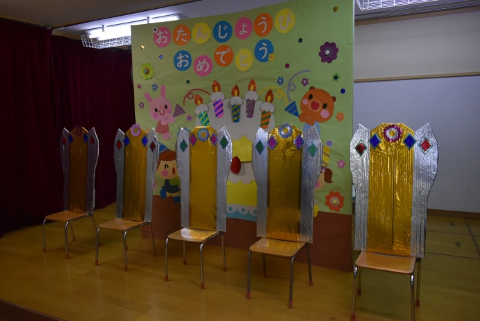 誕生児は,誕生会仕様の特別イスで過ごします