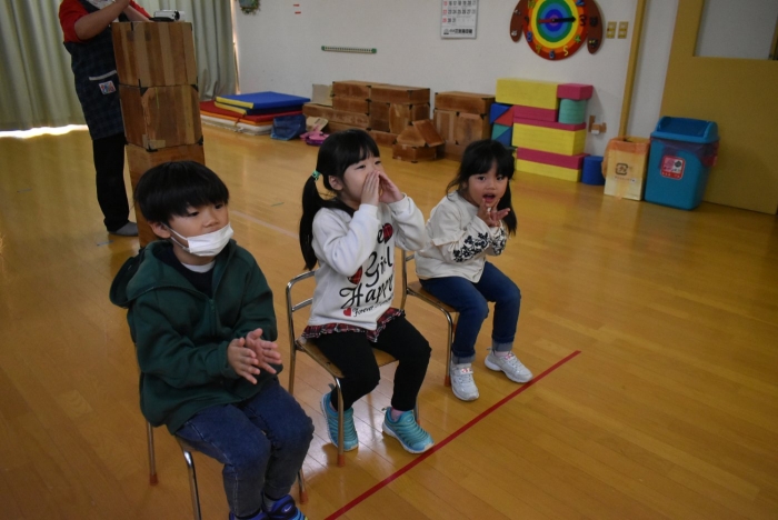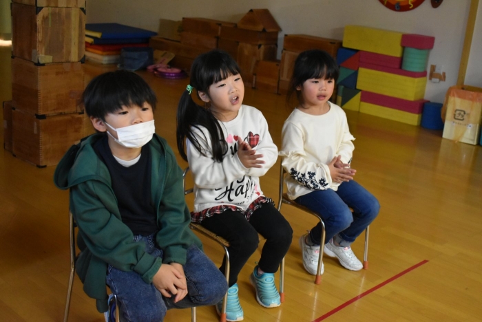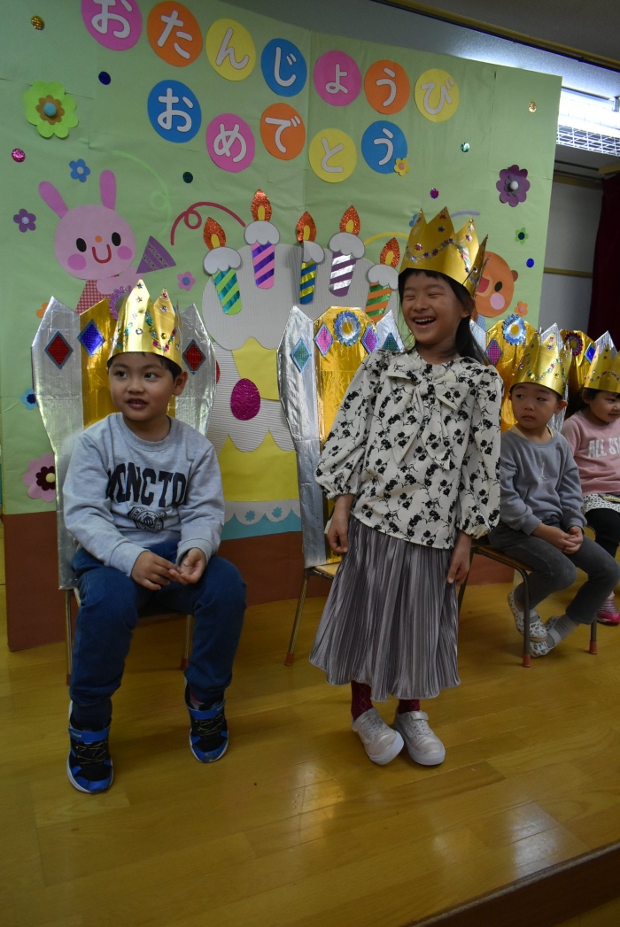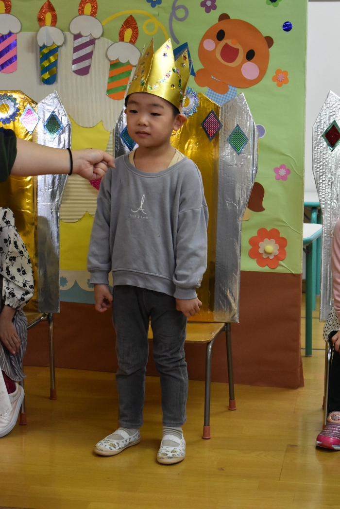 お祝いする人の方が少ないですが,3人で元気に誕生日のお友達の名前を呼んだり,たくさん拍手を送ってあげてください