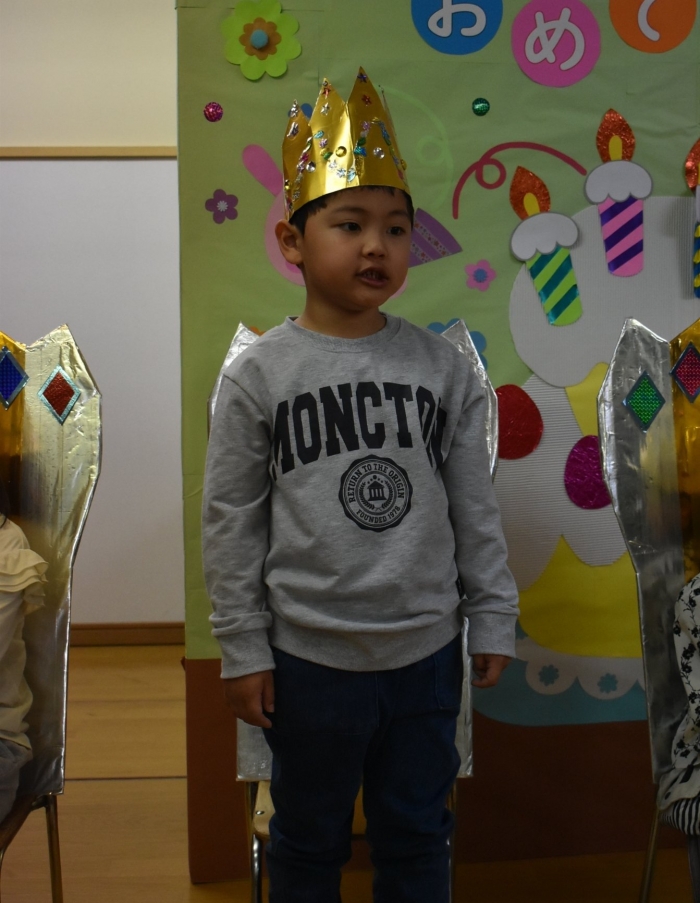 誕生会も3年目,ハキハキ笑顔で自己紹介!