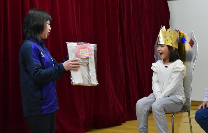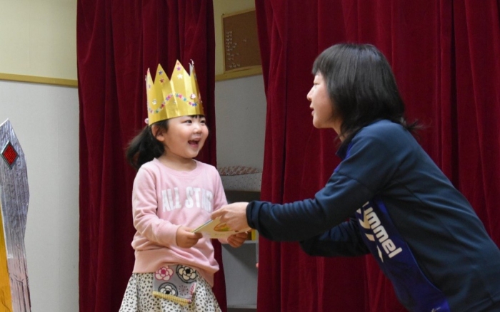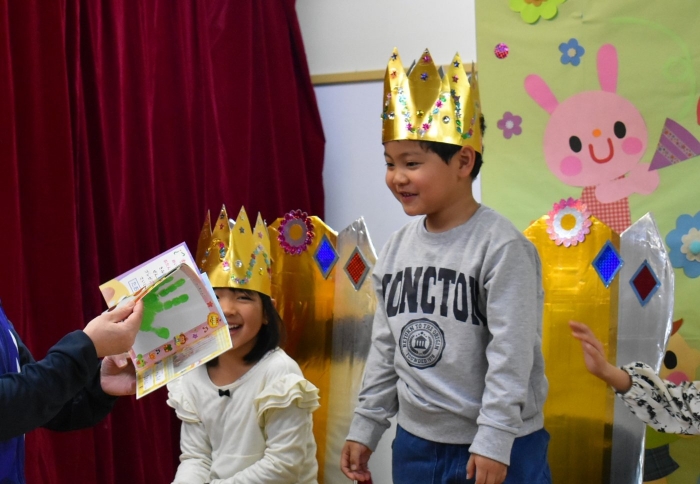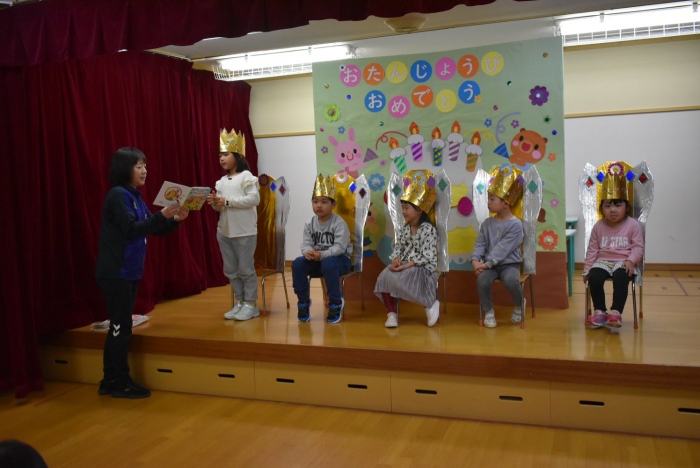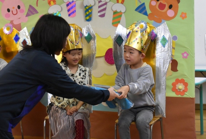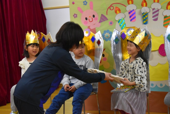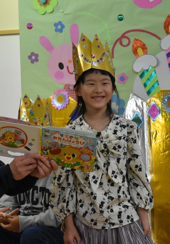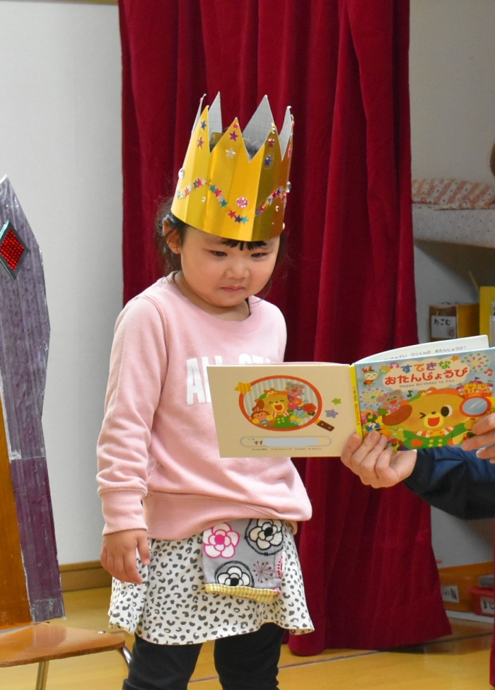 誕生日絵本(祝福メッセージを園長が代読)&プレゼント授与, 見ている方も嬉しくなる誕生児の姿をご覧ください!