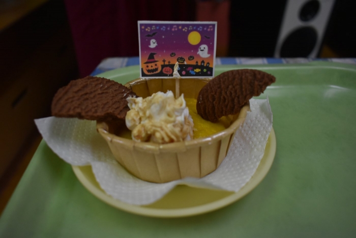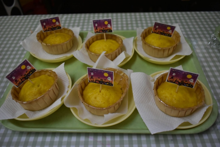 誕生会のおやつは,ハロウィン仕様『カボチャ蒸しパン』