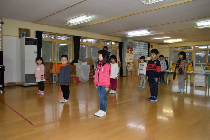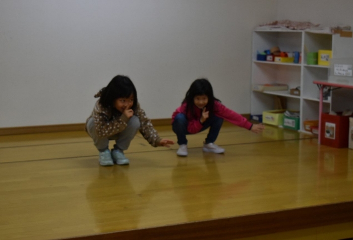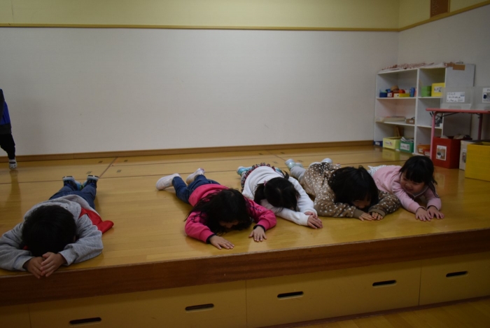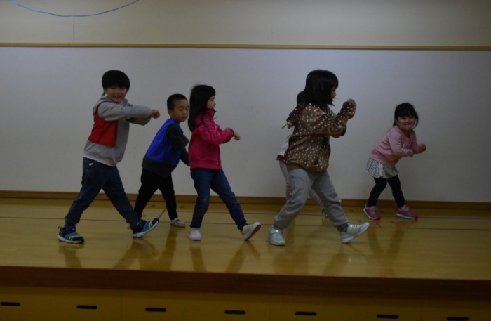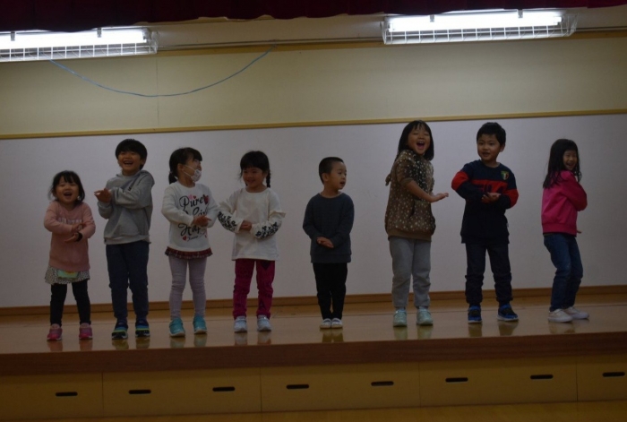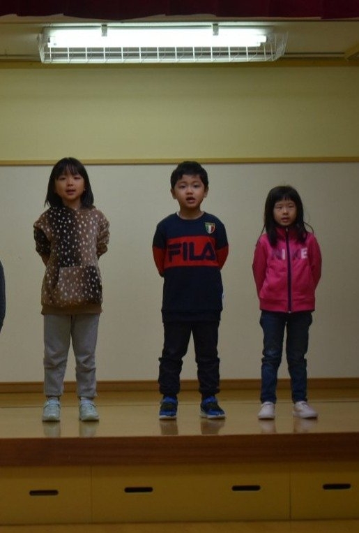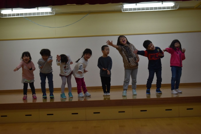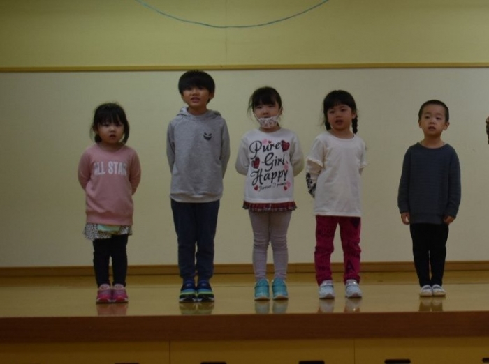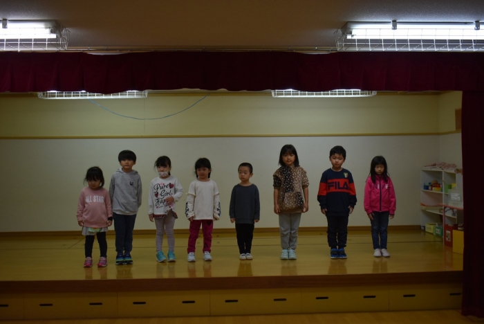 全園集会と併せ,発表会に向けた『ステージ発表』練習を行いました。第1回目の今日は,全園児での歌『園歌』『バスごっこ』をうたってみました。久しぶりに立つステージ・初ステージに,少々緊張気味の子もいましたが,みんな一緒の心強さと,堂々と歌う友達の姿に感化されていく様子がありました。