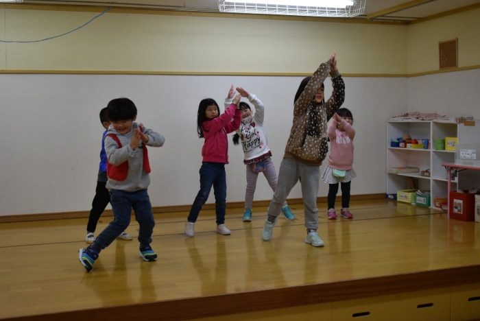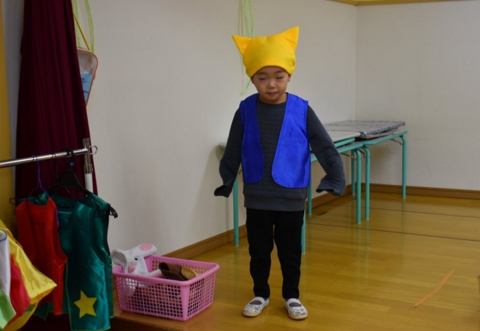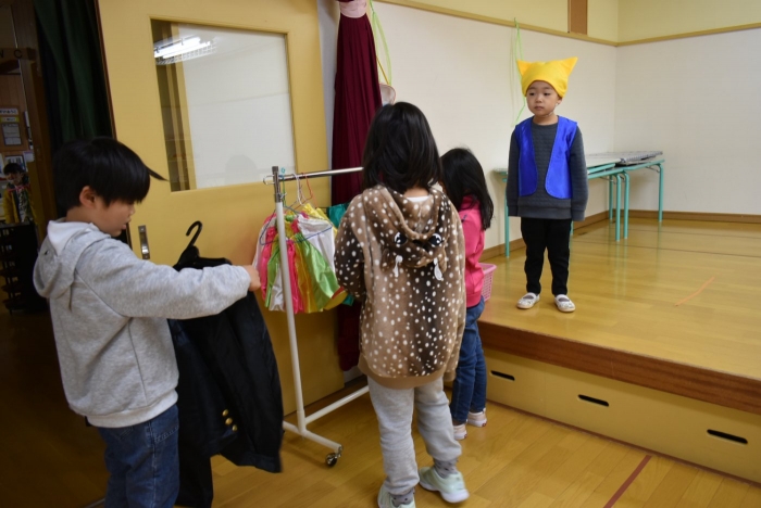 様々な曲を聞き,歌い,演じ,話し合いながら発表会での演目も決定! ステージでも伸び伸び踊れるように皆で遊戯室を整えたり,歴代の衣装を出したりしたことで,朝遊びでは衣装を身に付けたり踊ったことのある曲を楽しむ子ども達の姿がありました。