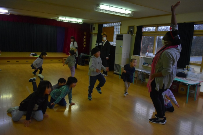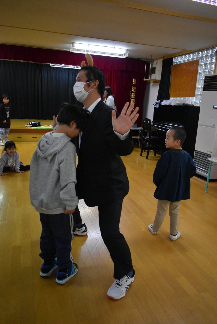 ALT交流日に併せ,出前授業『英語』を行っていただきました。一年振りの再会となるD先生と,出前授業としては初顔合わせとなる中学校英語担当 K先生との豪華コラボ☆彡遊びながら楽しく英語に親しみました。