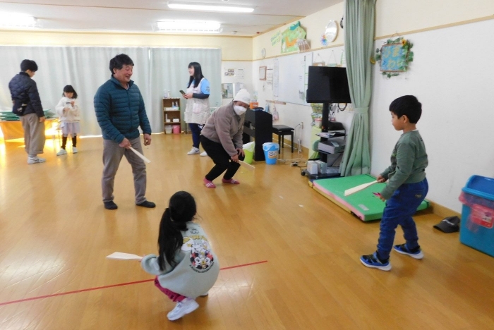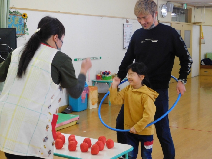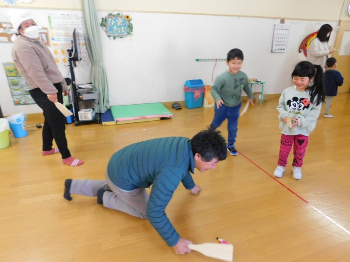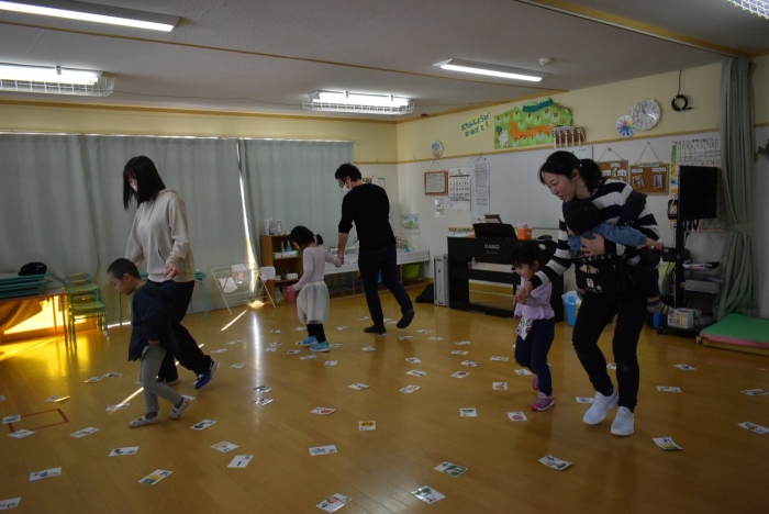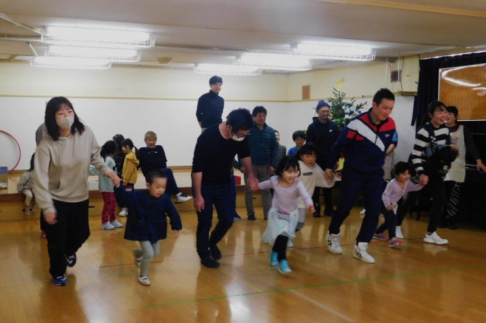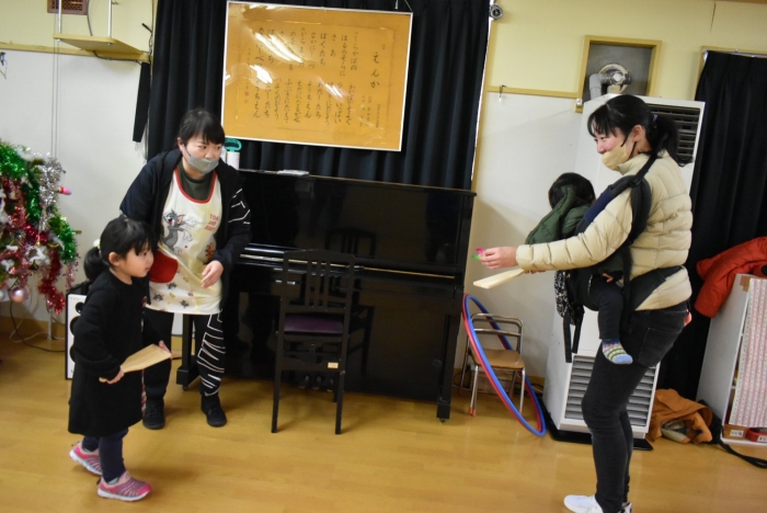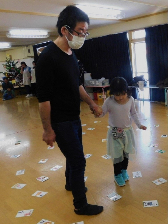 園側の意図を汲み,子どもと同じ目線で関り楽しんでくださった保護者の皆様,本当に有り難うございました。一年の締め括り,全園児8名&親子が揃った最後の行事を,いい形で終えることができました。