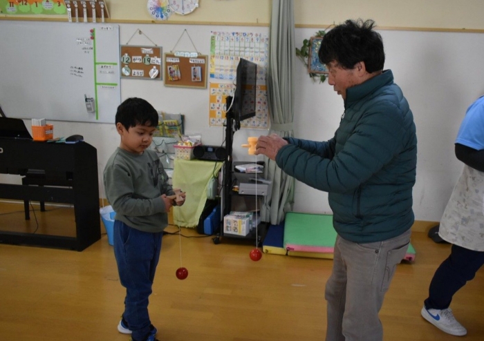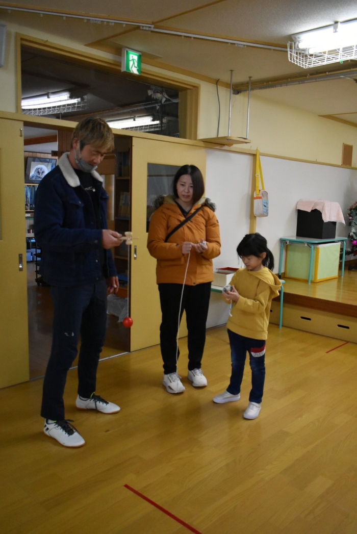 正月遊び体験 ~伝承遊び,コマ,剣玉,羽子板に挑戦!~