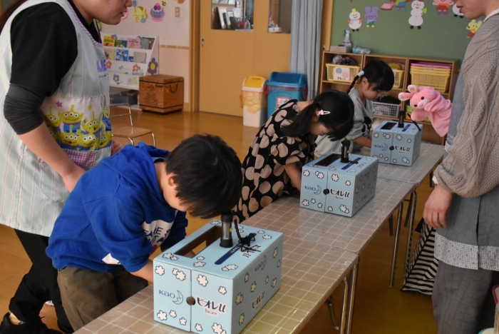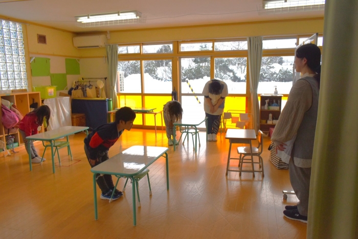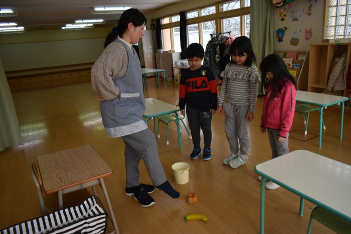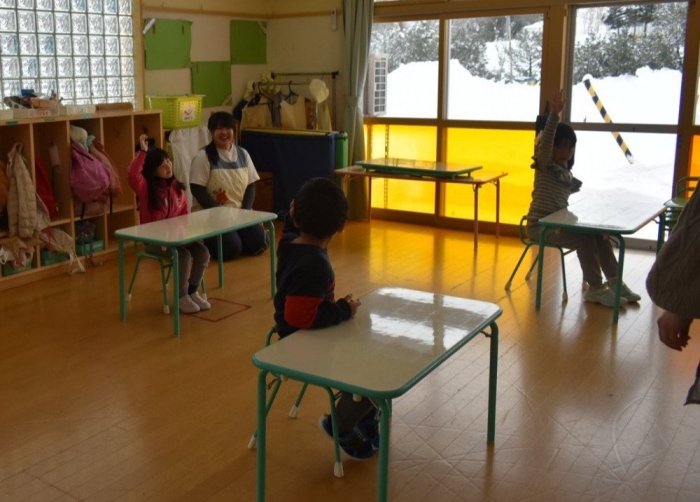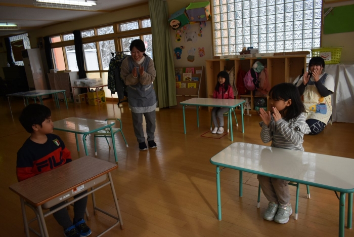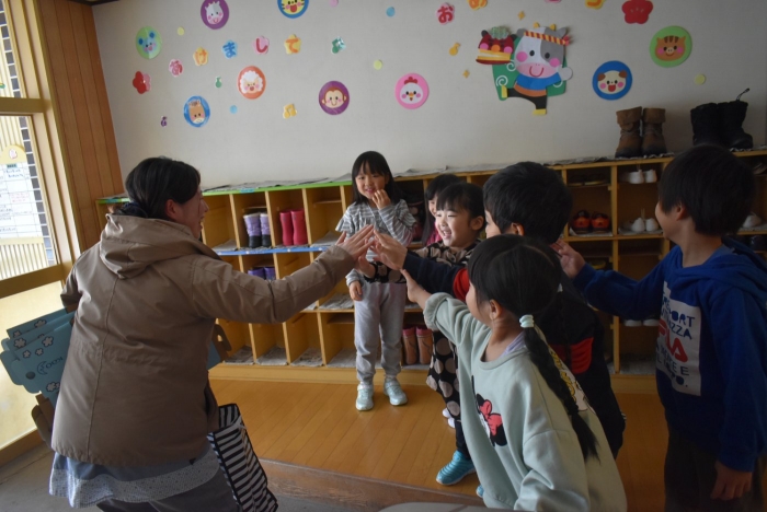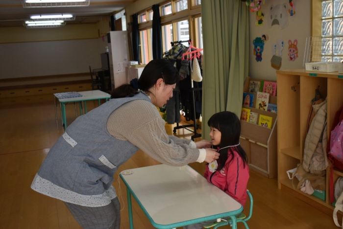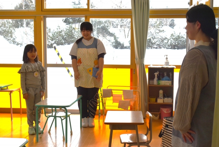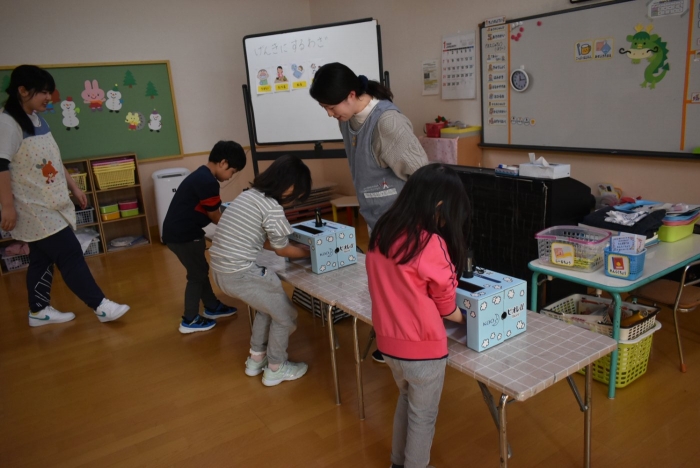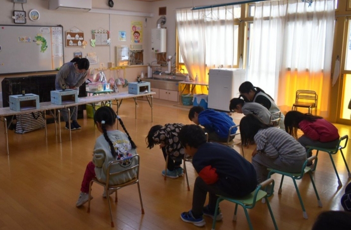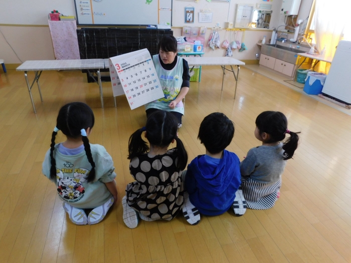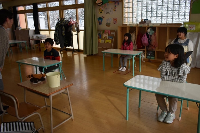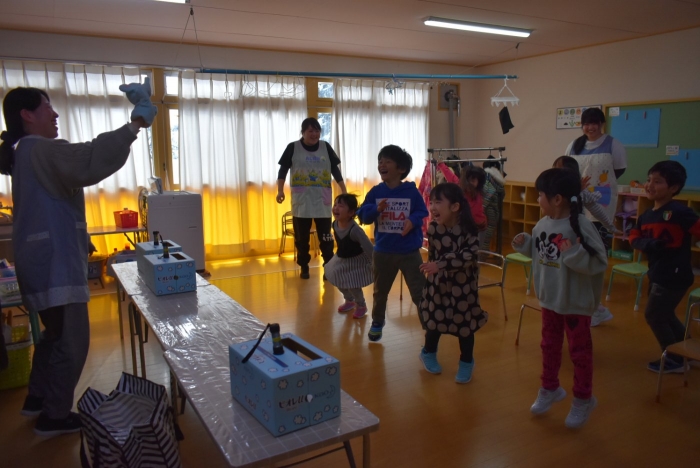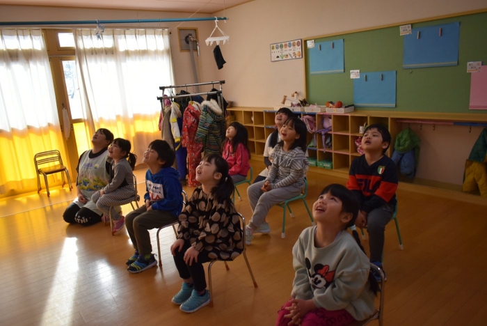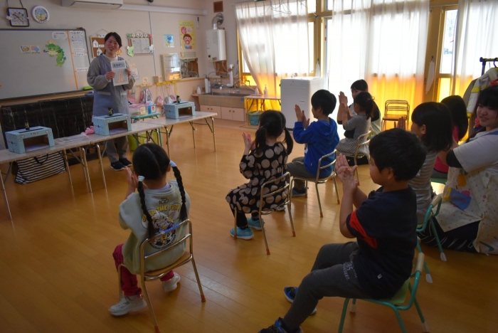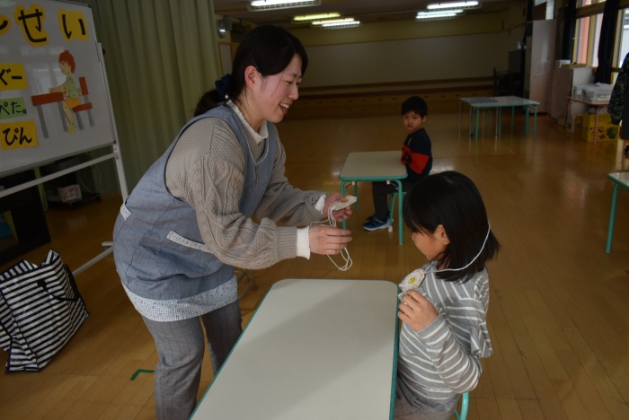 中西別小学校の養護の先生にお越しいただき,出前授業を行っていただきました。全園児向けに風邪予防について,さらに年長組は就学に向け正しい姿勢について教えていただきました。小学校交流や出前授業で,いつもお世話になっている養護の先生に対し,とても親しみを感じている子ども達。今回の出前授業も,わくわく楽しみながら受けていました。