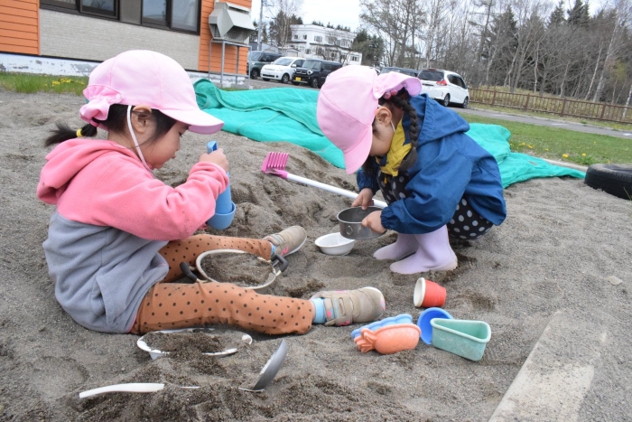 これでいよいよ野菜の栽培に取り組めます。さて、今年は何を植えようかな?子どもたちと相談して決めたいと思います。お父さんたちに鹿よけネットをかけてもらってから、まずはじめは全園児で芋を植えようと思っています。