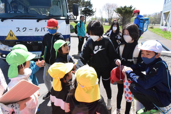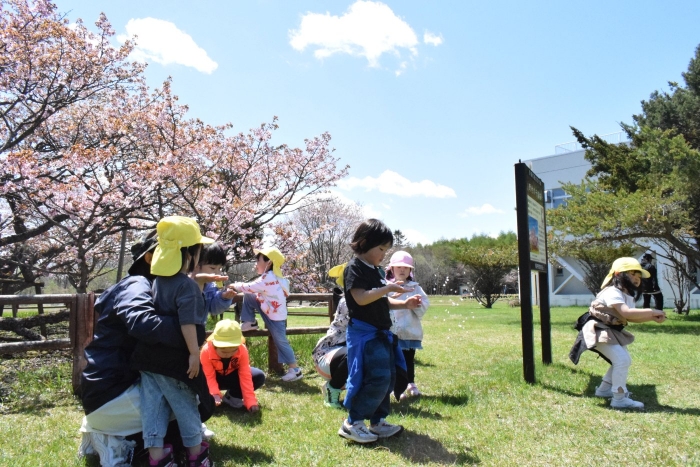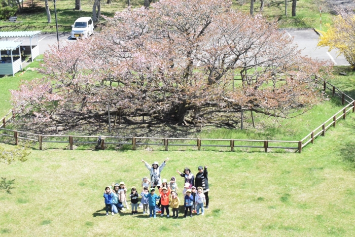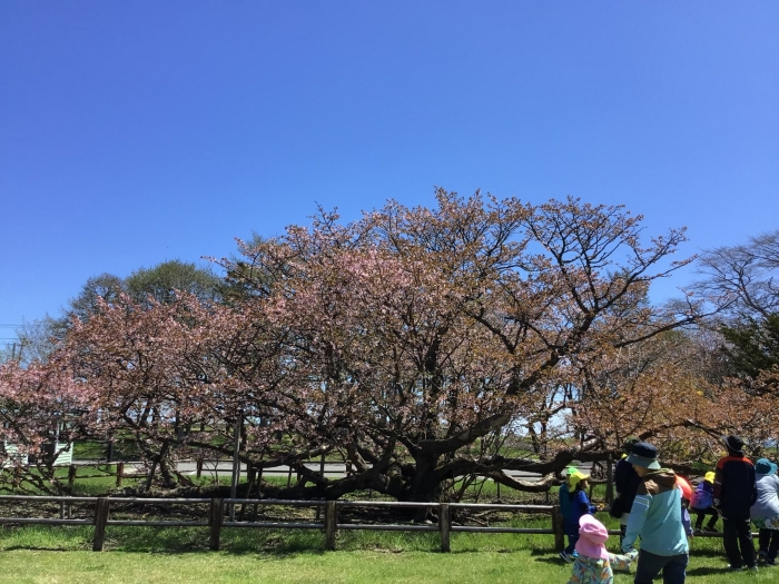 樹齢100年、天然記念物で、別海町の文化財に指定されている野付小学校の千島桜。満開を迎える時期を逃さないように、今年もみんなで見に行ってきました。