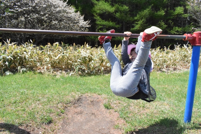 幼稚園には無い遊具でたくさん遊んできました。近くにはヨモギも!イラクサもあってお昼の食材も調達してきましたよ!(^^)! イラクサの天ぷらはクセが無くて絶品です!(^^)!
