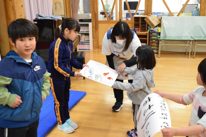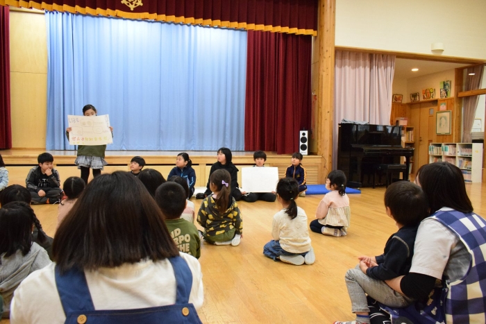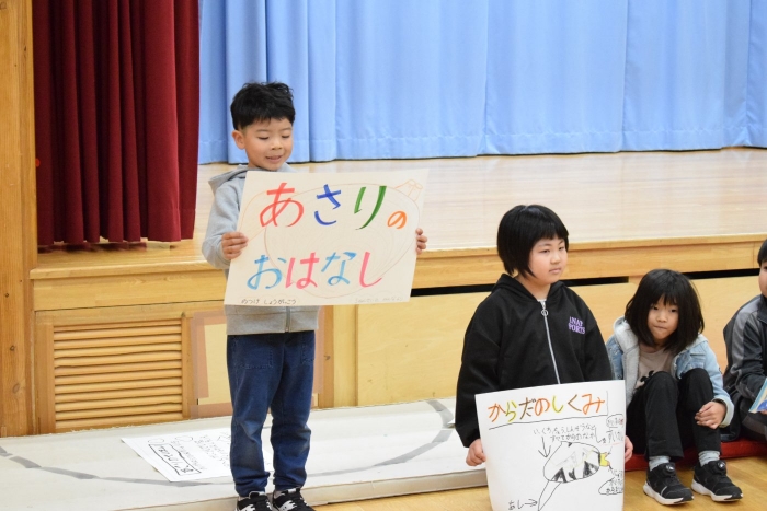 今年も3年生が理科の授業でアサリのお勉強をしたことを園児に教えに来てくれました。一人一人立派に発表している3年生に尊敬の眼差しで見つめる園児たち。あさりには同じ模様は無いことや子どもを産むのは1年に一回だけ、固いので手で割れない、あさりに似た貝もある、静岡のあさりは黒い、あさりのたくさん採れる場所、あさりの砂抜きについて、外国にもあさりは居る、あさり醤油というのもあること、あさりは海の水をきれいにする、などなど絵も描いてあるので視覚的にもわかりやすく、興味を引く内容でした。「あさりについて」は野付学で位置付けている活動です。6月6日には教えてくれた3年生と一緒にあさり掘りをする予定です。交流するのが一層楽しみになったようです。研究した解説図は幼稚園にプレゼントしていってくれました。ありがとうございました。