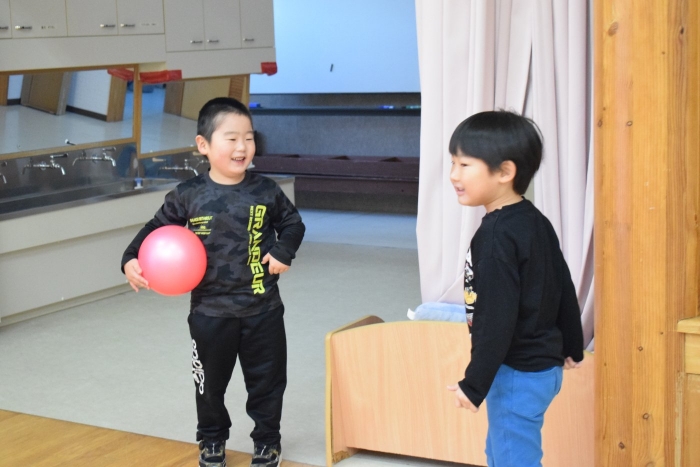 今日も朝来ると早々に仲間を集めて『かたき』が始まっていました。頭はセーフ、5歩以上歩かない、ボールをとったらすぐ投げる、など自分たちでルールを確認しながら進めていましたよ。