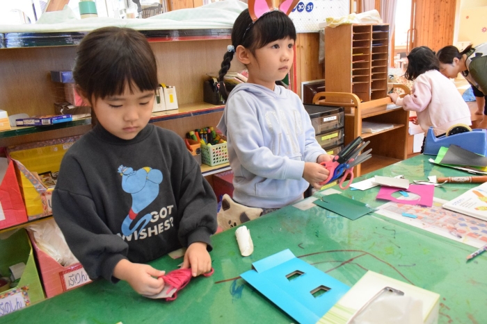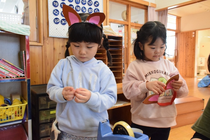 うめさんはネコの耳が必須アイテム(*^-^*) 猫になり切ってイメージ豊かに遊んでいました!(^^)!
