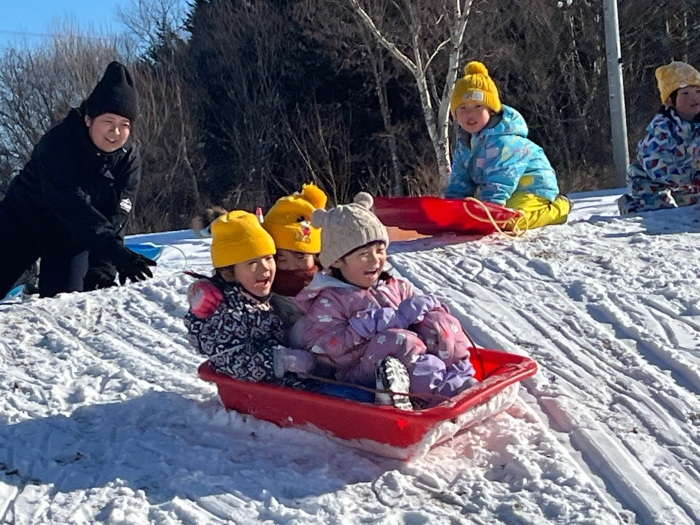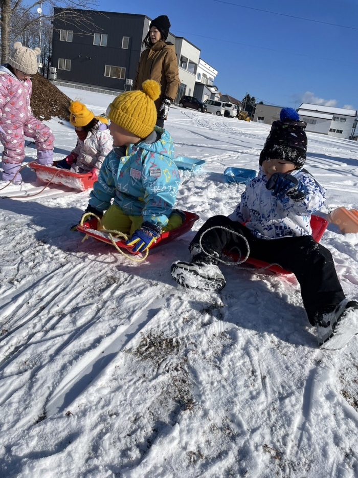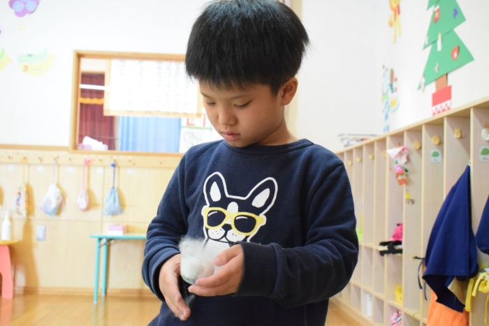 全園集会での話を聞いて、雪の結晶を見て見たくなったさくらさん、小学校から顕微鏡を借りて覗いてみると・・・。まるで理科の授業のよう(^^)/ のぞいたのは、雪、水、ティッシュ、毛糸、マスク・・・。