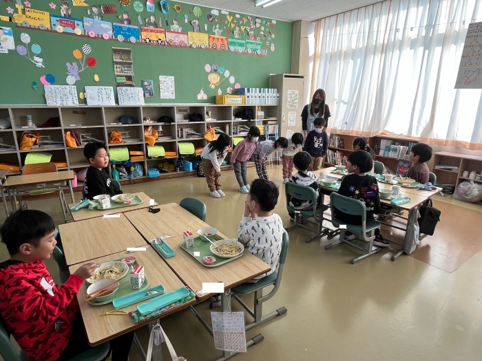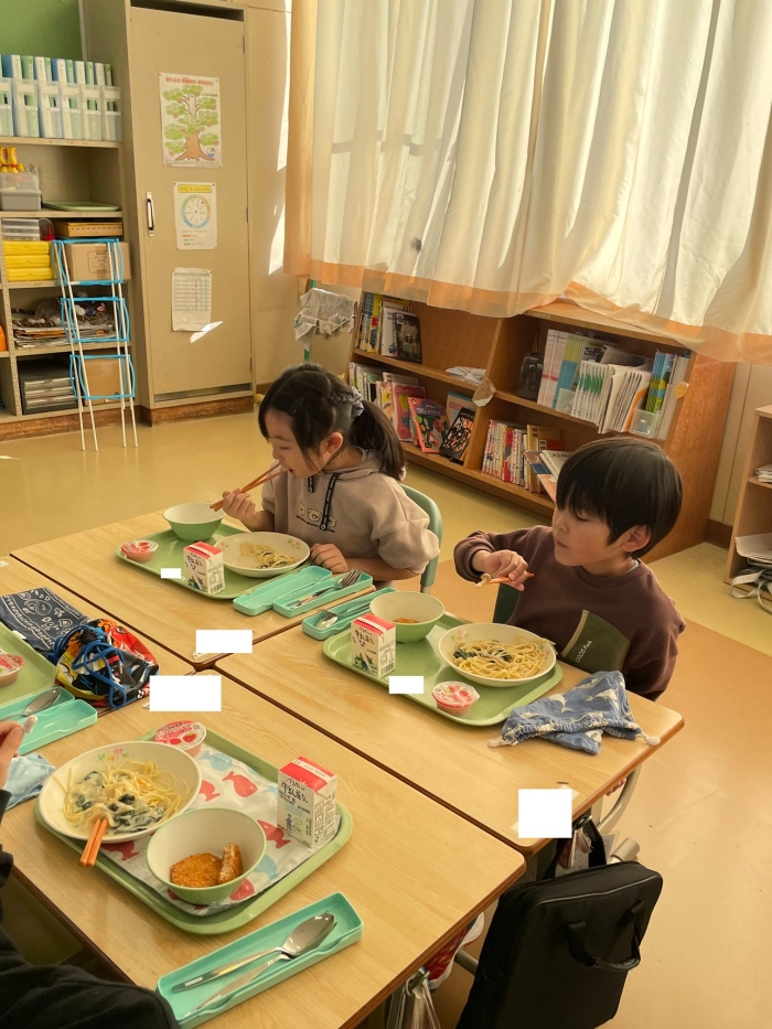 就学も視野に入れてさくらさんは1年生の給食準備をどうやっているのか、どのぐらいの量を食べているのか、見せてもらいに行きました。さすが1年生、さくらさんの倍の量をたべていましたよ! 1年生になるのがますます楽しみになったさくらさんでした(*^-^*)