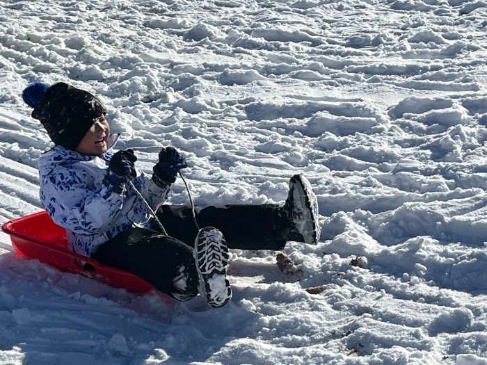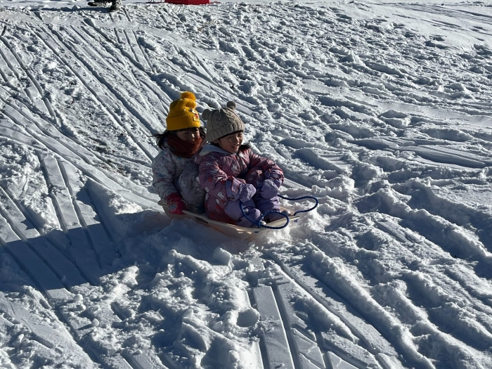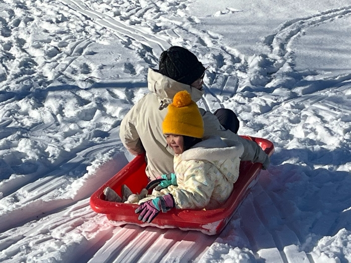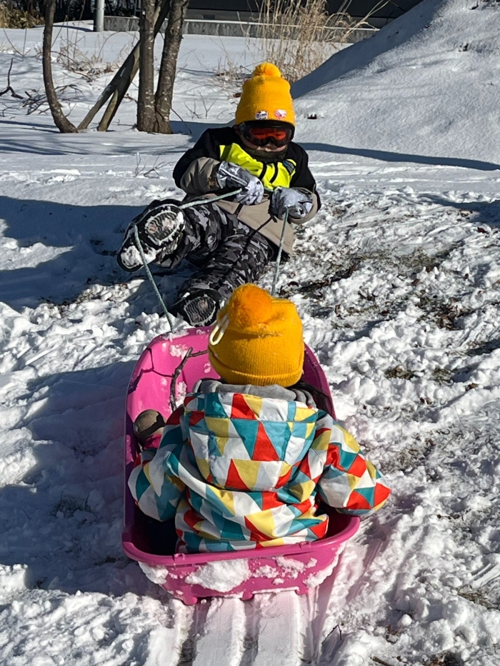 昨日降った雪はサラサラ、今日もパークゴルフ場へ繰り出していきましたよ!
