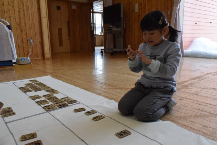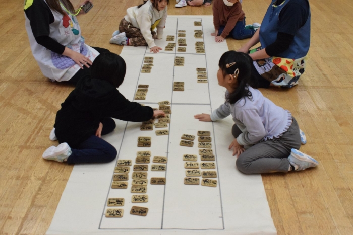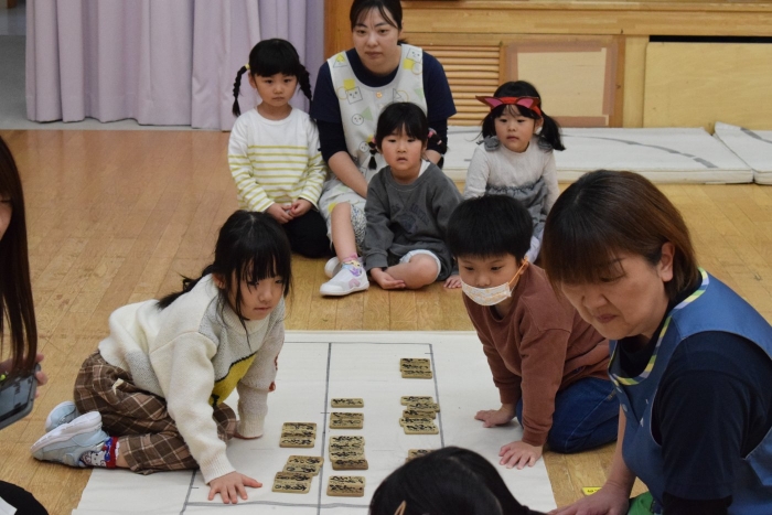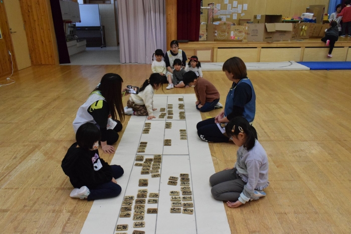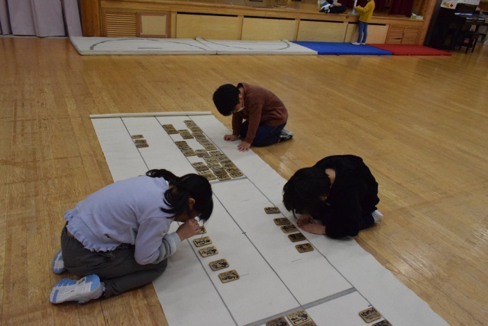 昨日の百人一首体験が楽しかったさくらさんは、朝来るとさっそく昨日教えていただいたことを思い出してやっていましたよ!その様子をうめさんも興味津々で見ていました(*^-^*)