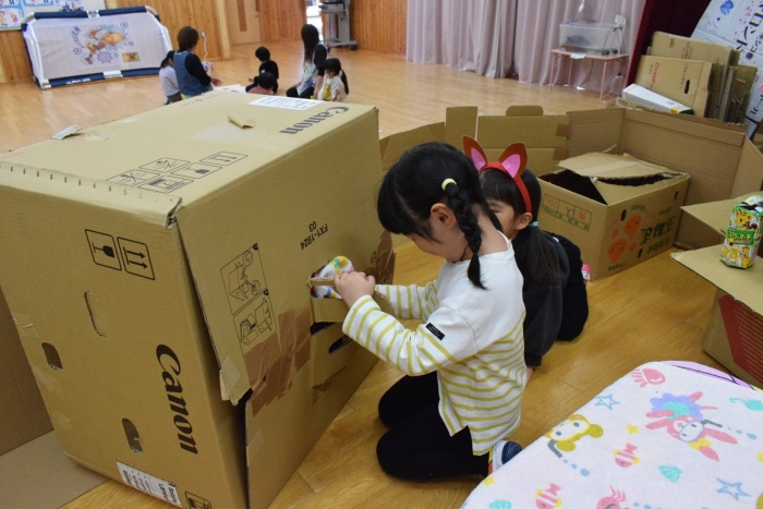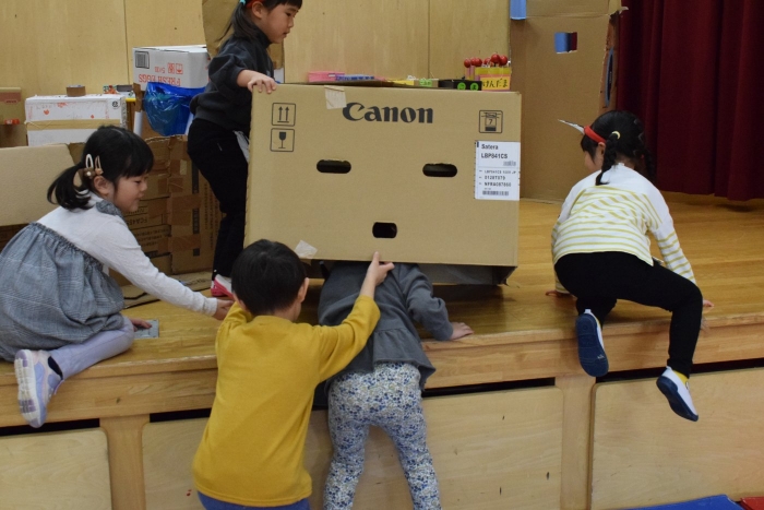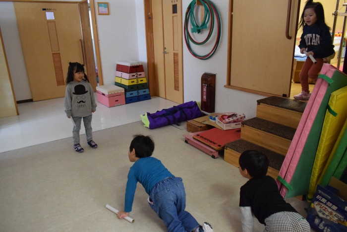 ももさんはネコになった子につられてどんどん仲間が増え、気づいたらクラスみんなでネコごっこが盛り上がっていました(^^)/
