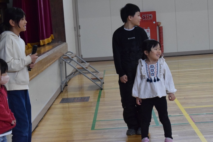 1年生と2年生が園児たちに練習をしている『虹』を聞かせてくれました。すごく上手で素敵な歌声にうっとり(*^-^*)