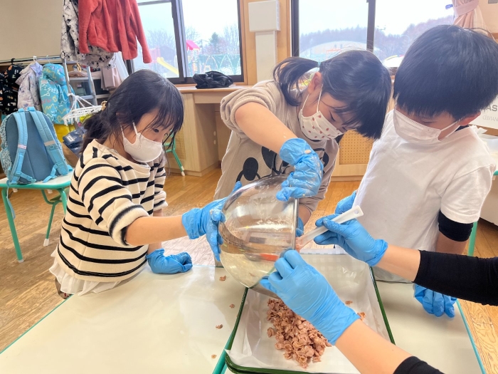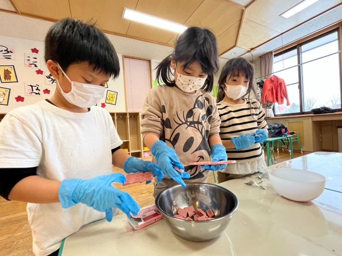 先日のバレンタインデーの経験から「ようちえんで、チョコつくりたい!」とさくらさん。今日の午後活動で作ってみることにしました。